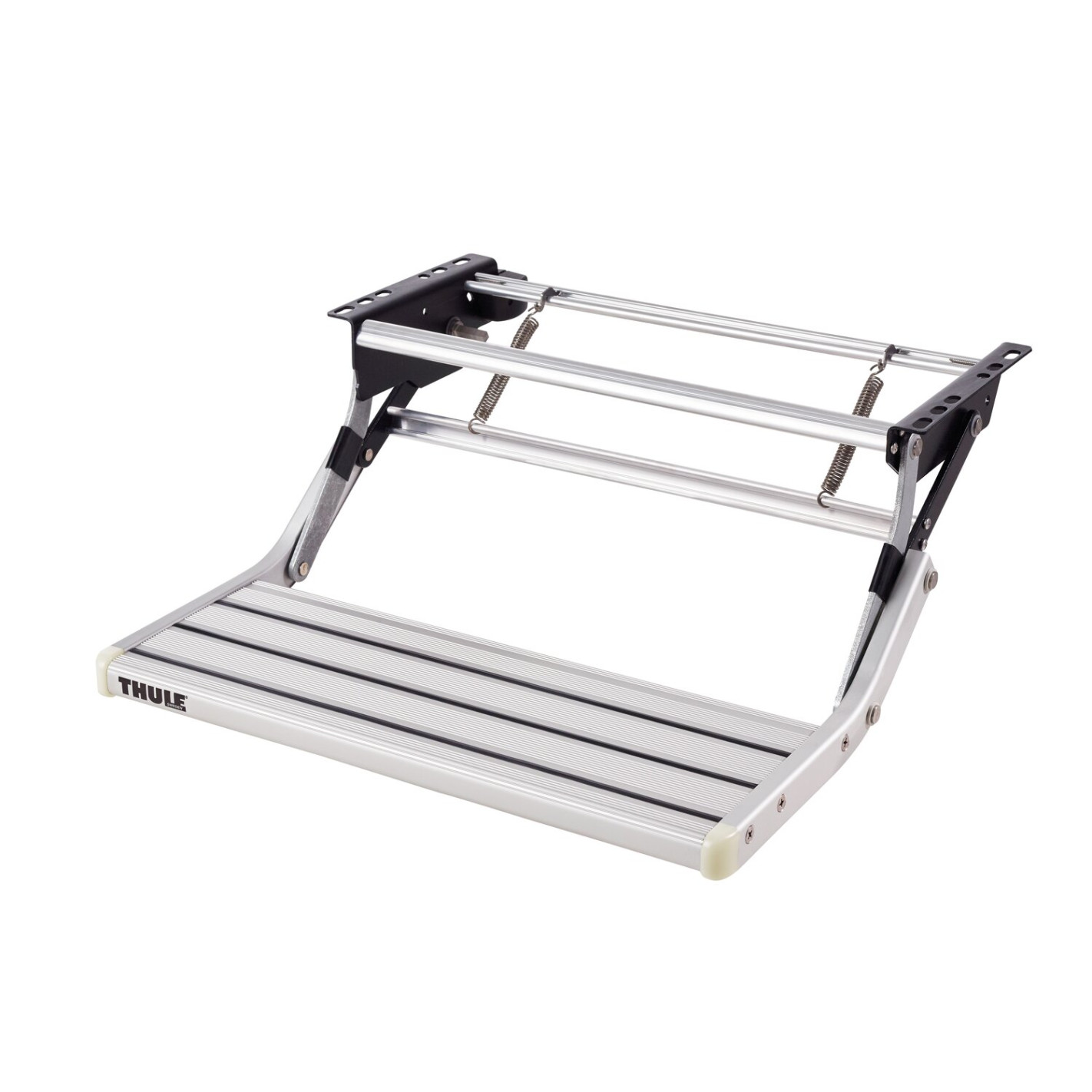La marche en aluminium est rainurée. Elle est solide, légère et antidérapante.