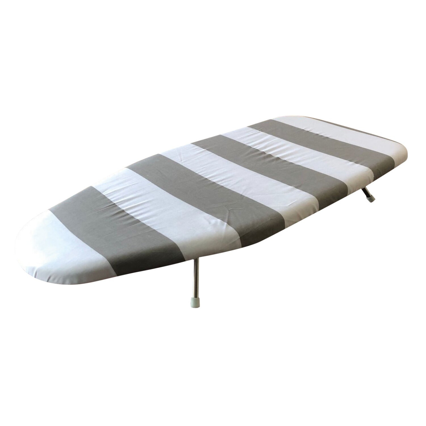 Surface perméable à la vapeur. Housse 100% coton finition élastique, sur plateau grille + molleton. Embouts anti-dérapants. Dimensions (L x l) : 74 x 30 cm. Hauteur pliée : 3,5 cm. Hauteur dépliée : 10 cm.