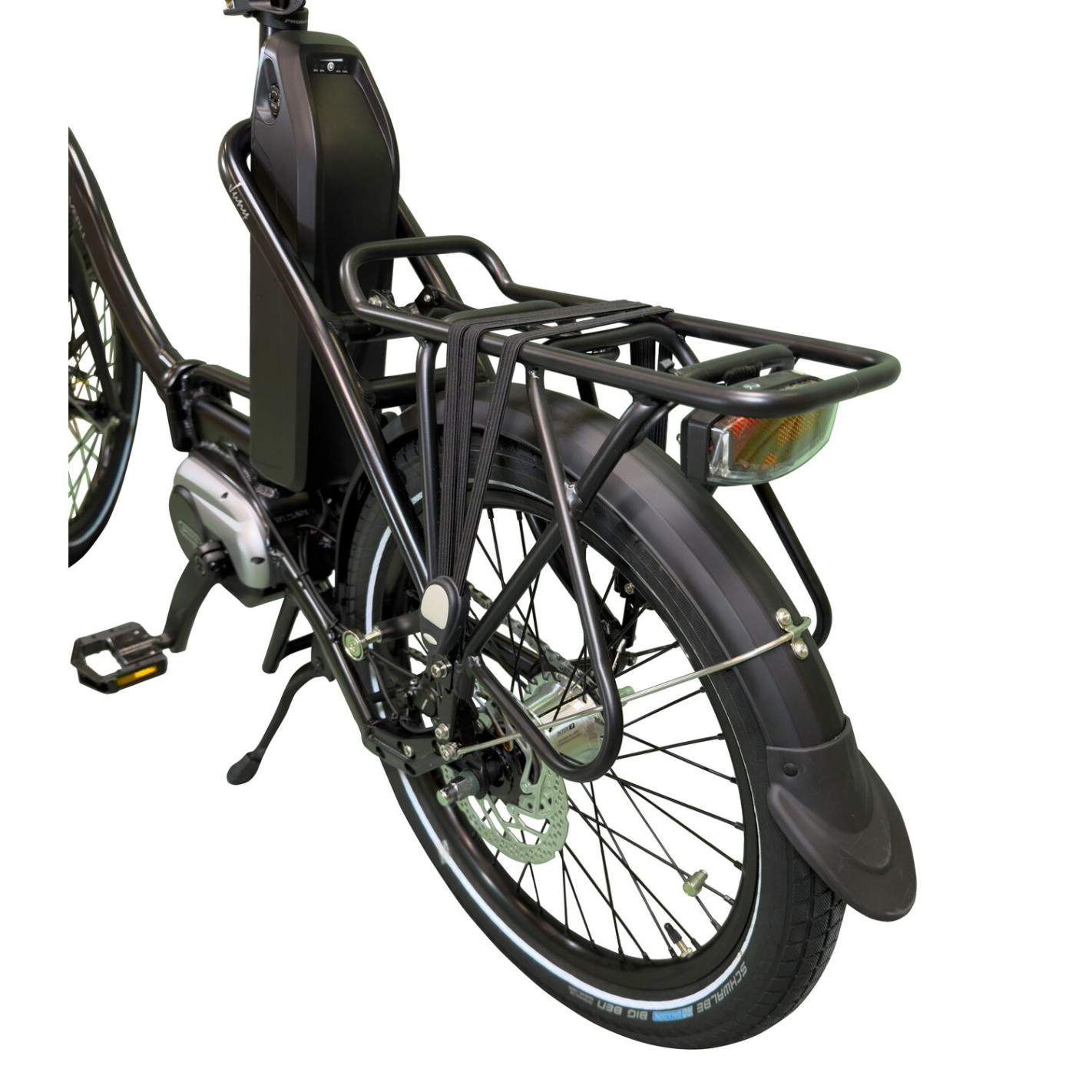 - Faire ses courses à vélo :oui ! C'est possible avec leporte-bagage intégré(25 kg maximum) et qui propose une sangle de maintien parfaite pour caler vos courses. Vous pouvez aussi y mettre vos sacs de sport afin de rejoindre vos différentes activités.