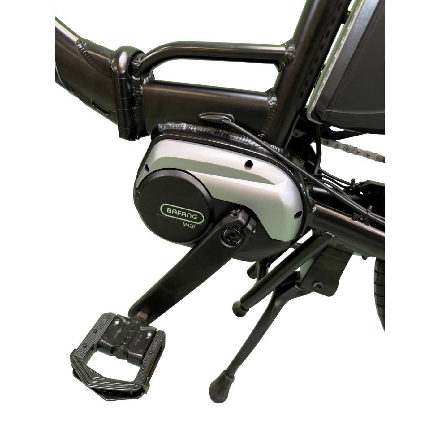 - Moteur central :situé sur le pédalier, le moteur BAFANG M420 36V/250W est un gage destabilité et d'équilibre, en ligne avec le centre de gravité. Aussi appelé moteur pédalier, ce type de système propose uneconduite plus fluidequi se rapproche des sensations réelles du vélo ainsi qu'un couple moteur plus élevé que sur les vélos à moteurs de roues. Lecouple moteur du JUNY est de 80 n.m, un indice élevé qui signifie que vous pouvez monter des pentes sans problème ! Si vous habitez dans une ville où les rues montent et descendent, vous vous sentirez comme un poisson dans l'eau.