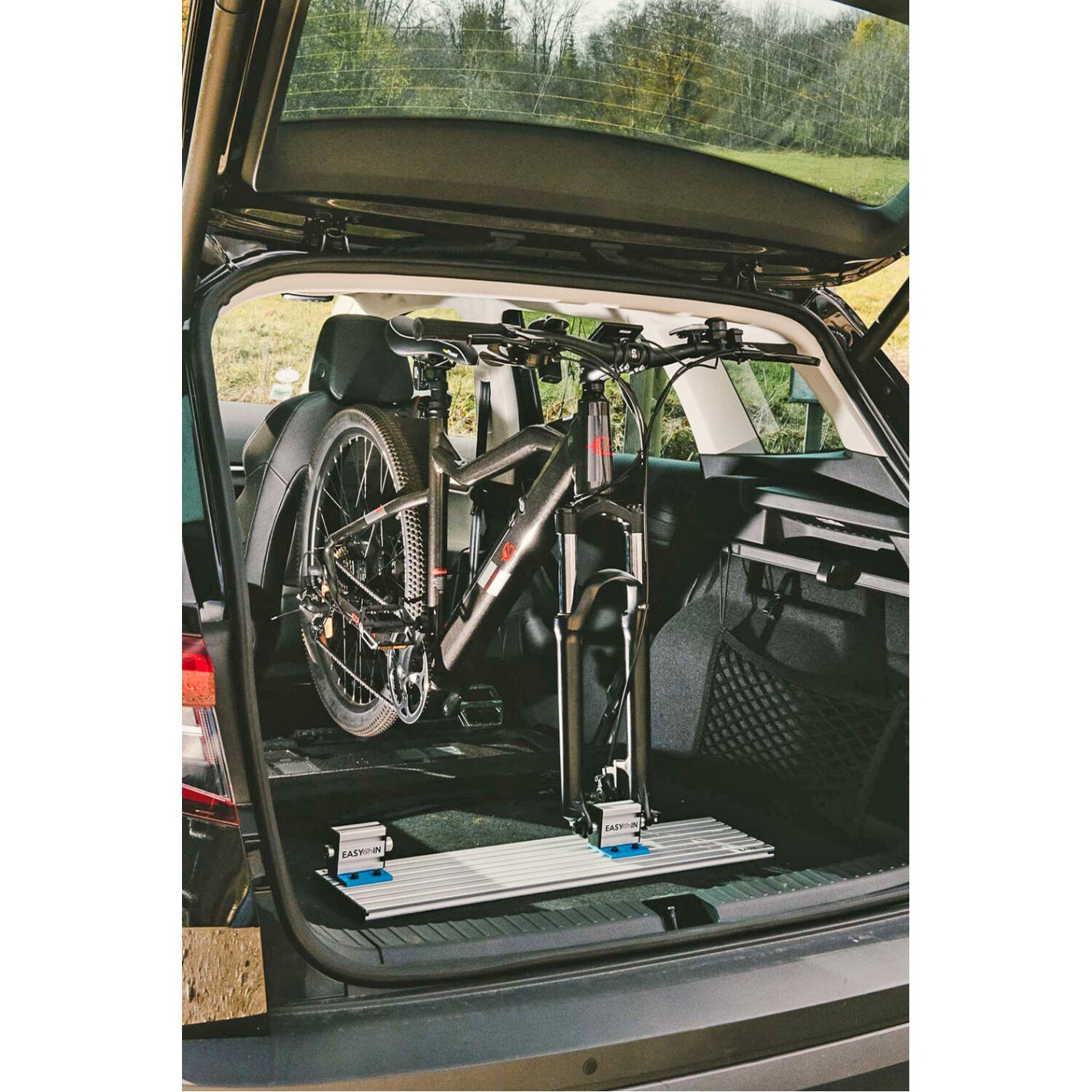 - Voiture et monospace : à installer dans le coffre avec les sièges rabattus selon le modèle de votre véhicule. Les voitures break de type Kango peuvent recevoir sans problème le porte-vélo EasyIn.