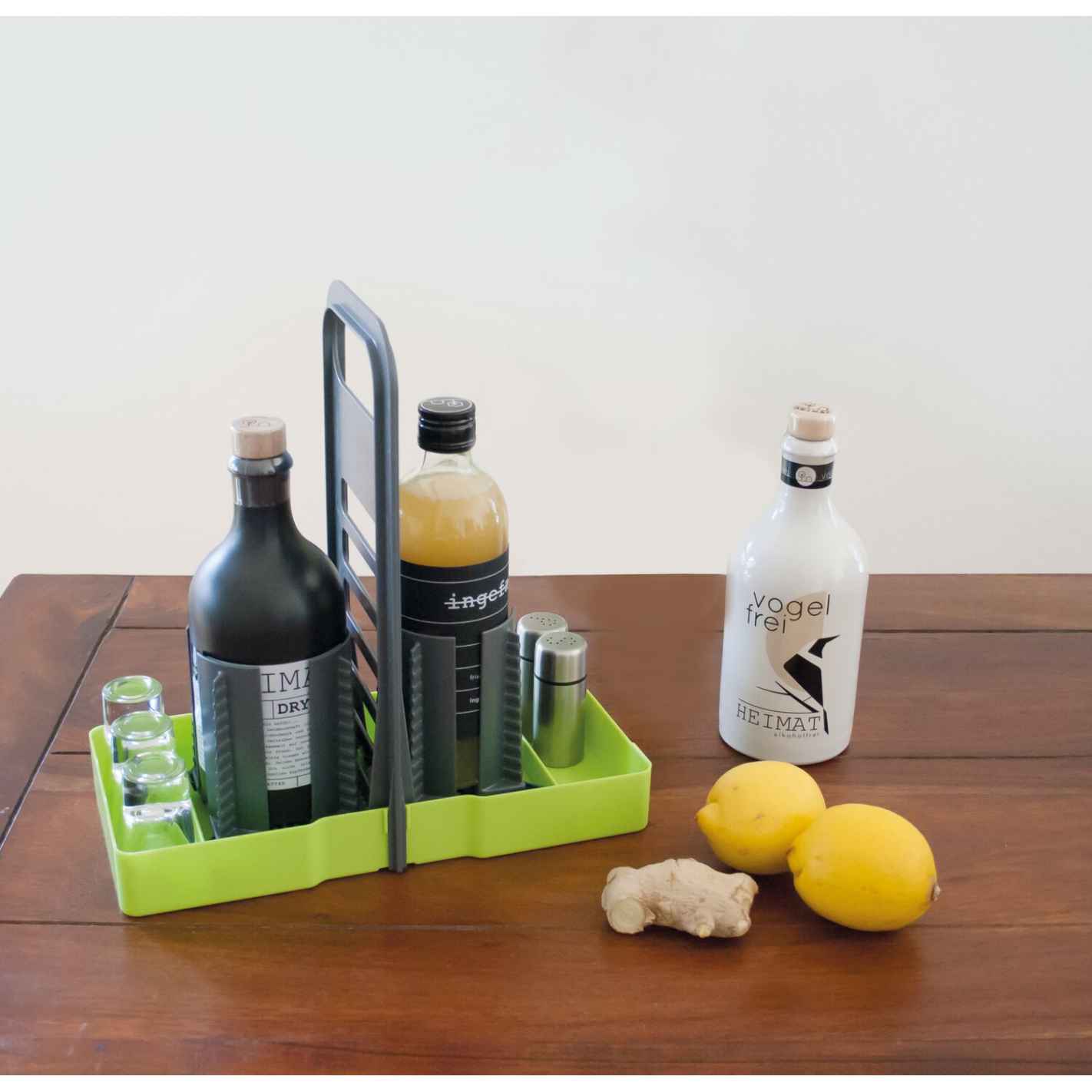 Le porte-bouteille assure le transport de bouteilles. A la base, il est destiné à séparer le vinaigre de l'huile. Mais grâce à ses modules ajustables, vous pouvez y stocker plusieurs types de bouteilles : eau, vin, vinaigre, huile etc... Il suffit de placer les supports sur la plaque de base pour fixer les bouteilles.