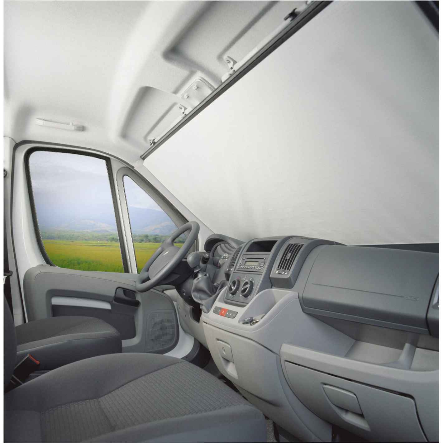 Store occultation Dometic. Le montage se fait simplement en fixant le store au niveau des pare-soleil pour occulter le pare-brise. Ce Store occultation Dometic vous protégera efficacement des rayons de soleil grâce à sa face extérieure en aluminium, il protégera également votre intimité et évitera de les regards indiscrets. Modèle beige pare-brise : boxer / jumper / Ducato 2002