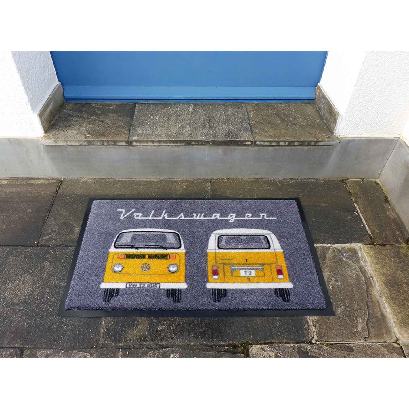Tapis d'intérieur de véhicule 75 x 50 cm Vokswagen Collection. Tapis arborant le design du célèbre Combi Van de la marque Allemande. Il décorera joliment l’entrée de votre véhicule de loisirs, de plus il vous permettra de ne pas salir votre intérieur.