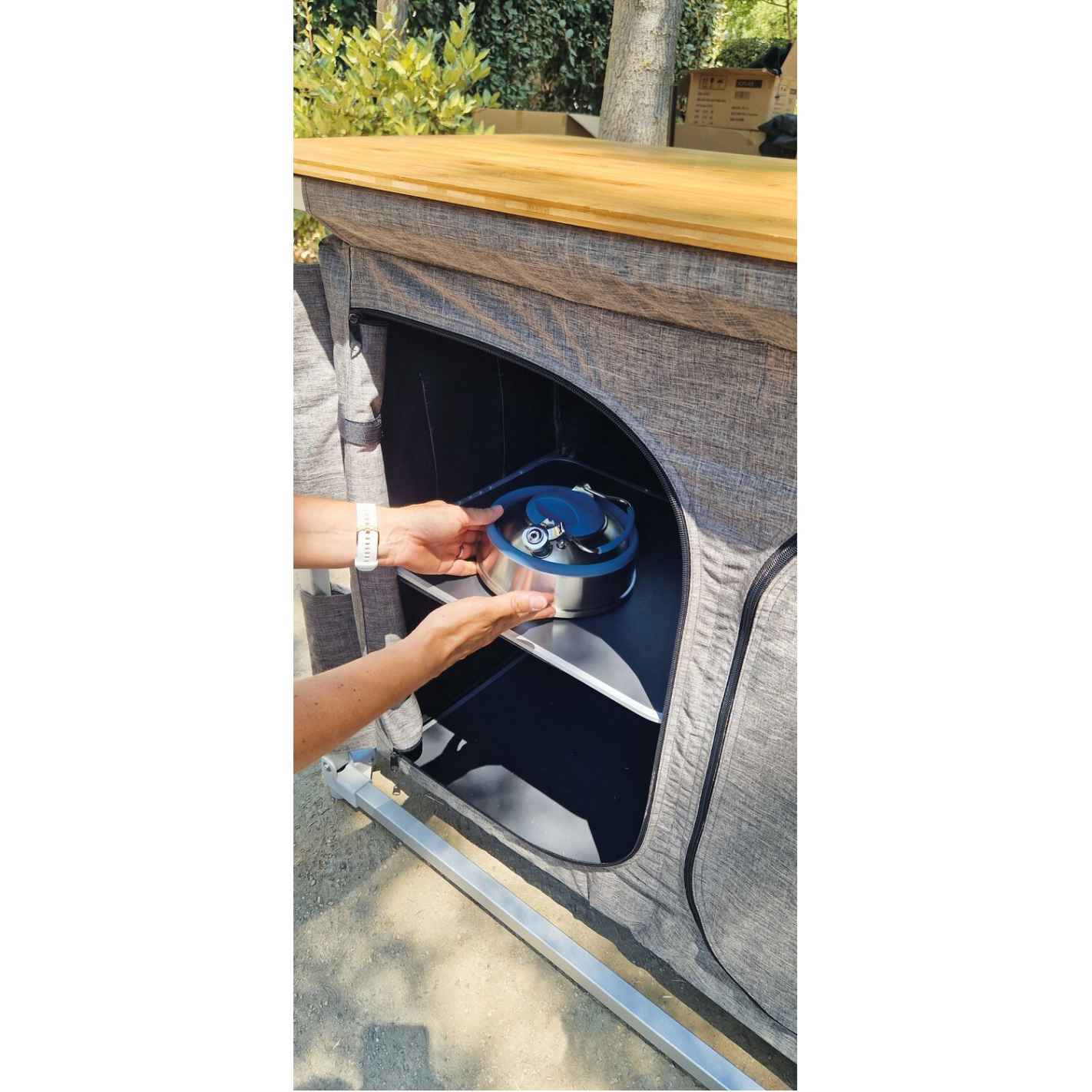 Cette bouilloire à gaz est parfaite pour vous préparer un thé ou un café lors d'une escapade. Rétractable et compacte, elle vous fait gagner de la place dans votre véhicule de loisir, quel qu'il soit. Son format compact s’adapte à toutes les aventures.