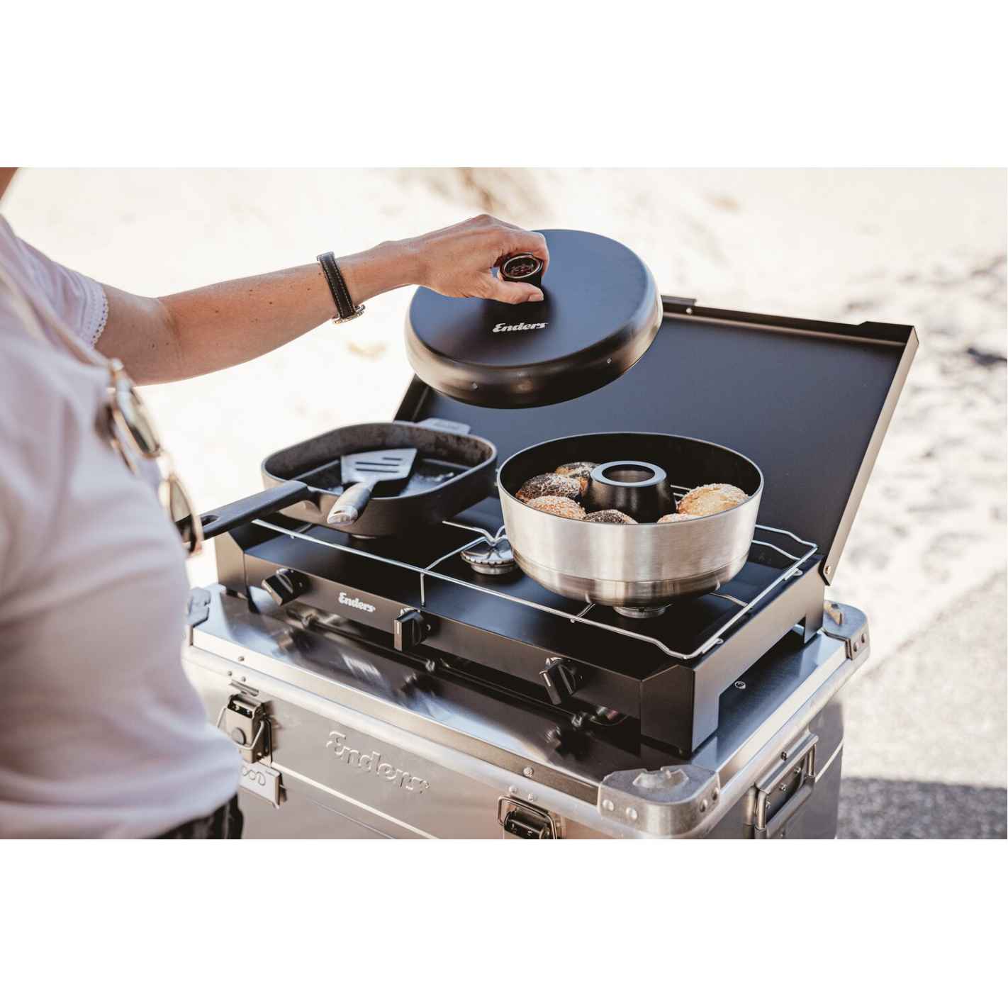 Ce four fonctionne sur divers supports de cuisson, tels que réchauds, barbecues ou plaques (hors induction), ce qui lui confère une grande flexibilité d’usage. Il est équipé d’un thermomètre intégré pour un contrôle précis de la température. La grille de cuisson incluse permet de rôtir, cuire ou gratiner une large variété de plats.
