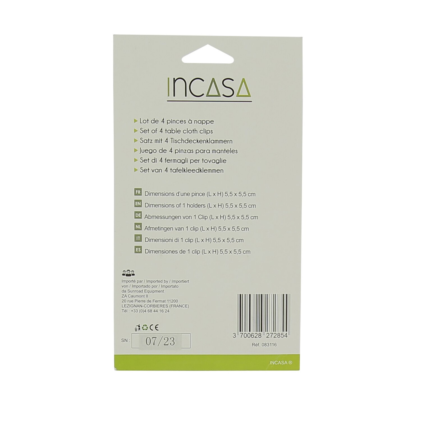 Les pinces à nappe Incasa sont fabriquées en plastique et se fixent facilement sur les coins de la nappe.