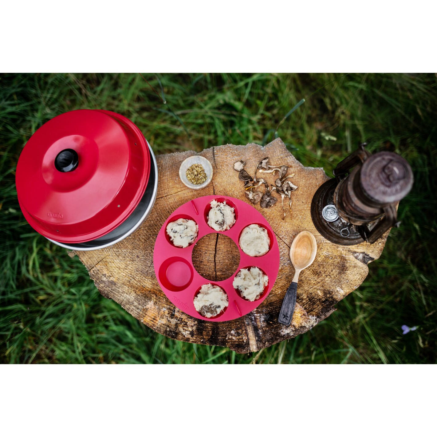 Pour faire de grandes préparations comme une quiche ou un gâteau, il existe directement le moule en silicone pour le four de camping Omnia.