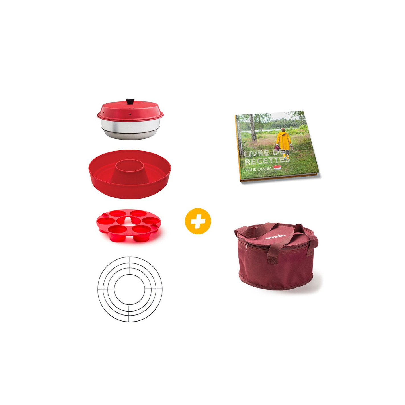 Pack Four Omnia. Ce pack four Omnia, vous permet de bénificier du célèbre four Omnia et de tous ses accessoires : Four Omnia, Grille additionnelle, Moule en silicone, Moule à muffins, le sac de transport, et du livre de recettes ! Le tout à un prix imbattable.