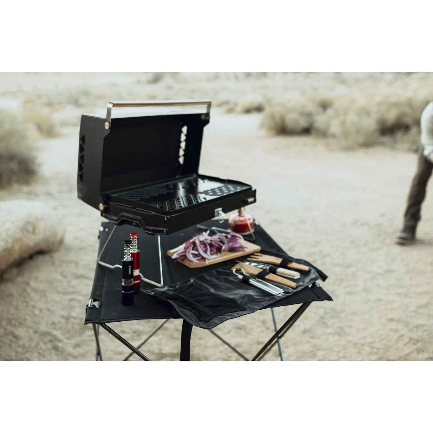 Ce set d'accessoires de cuisine est parfait pour cuisiner des aliments au camping avec un barbecue.