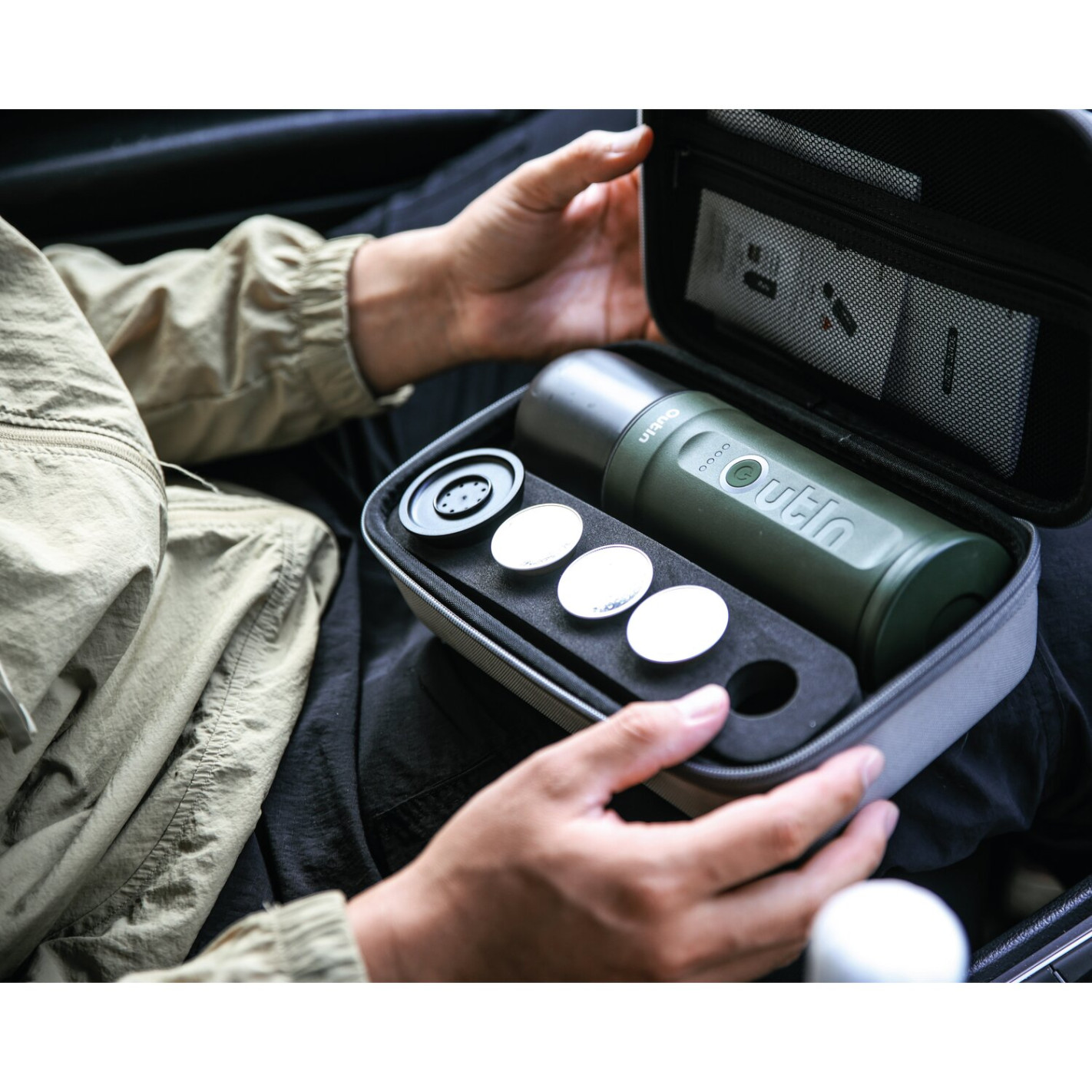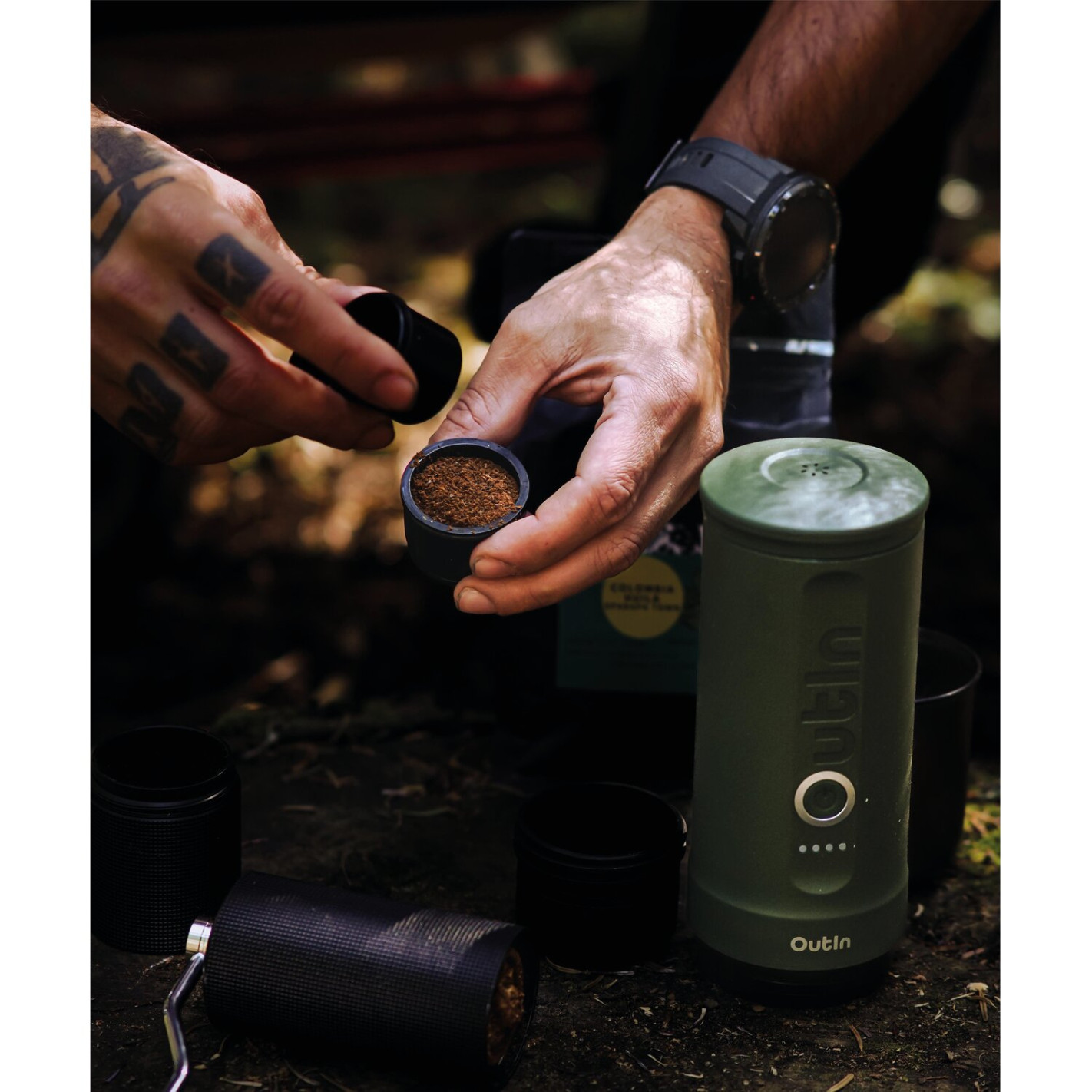 La machine à expresso portable OutIn Nano Green offre la liberté de déguster un café riche et crémeux où que vous soyez. Compacte et rechargeable, elle prépare jusqu’à 5 expressos avec de l’eau froide grâce à sa batterie puissante et son chauffage rapide en 180 secondes. Compatible avec le café moulu et les capsules Nespresso®, elle combine design durable, performance de 20 bars et praticité pour un expresso parfait en voyage, au bureau ou en plein air