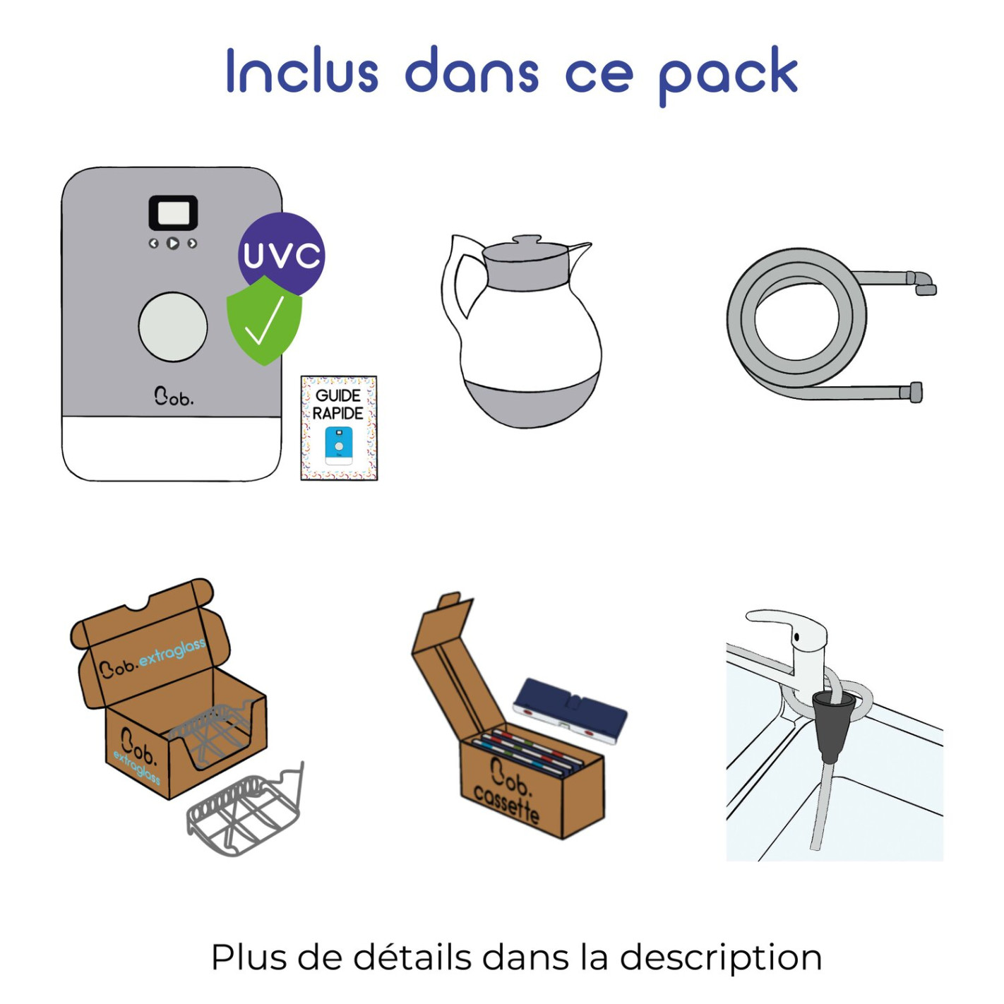 - Un pack extraglass pour laver jusqu'à 16 verres ou tasses