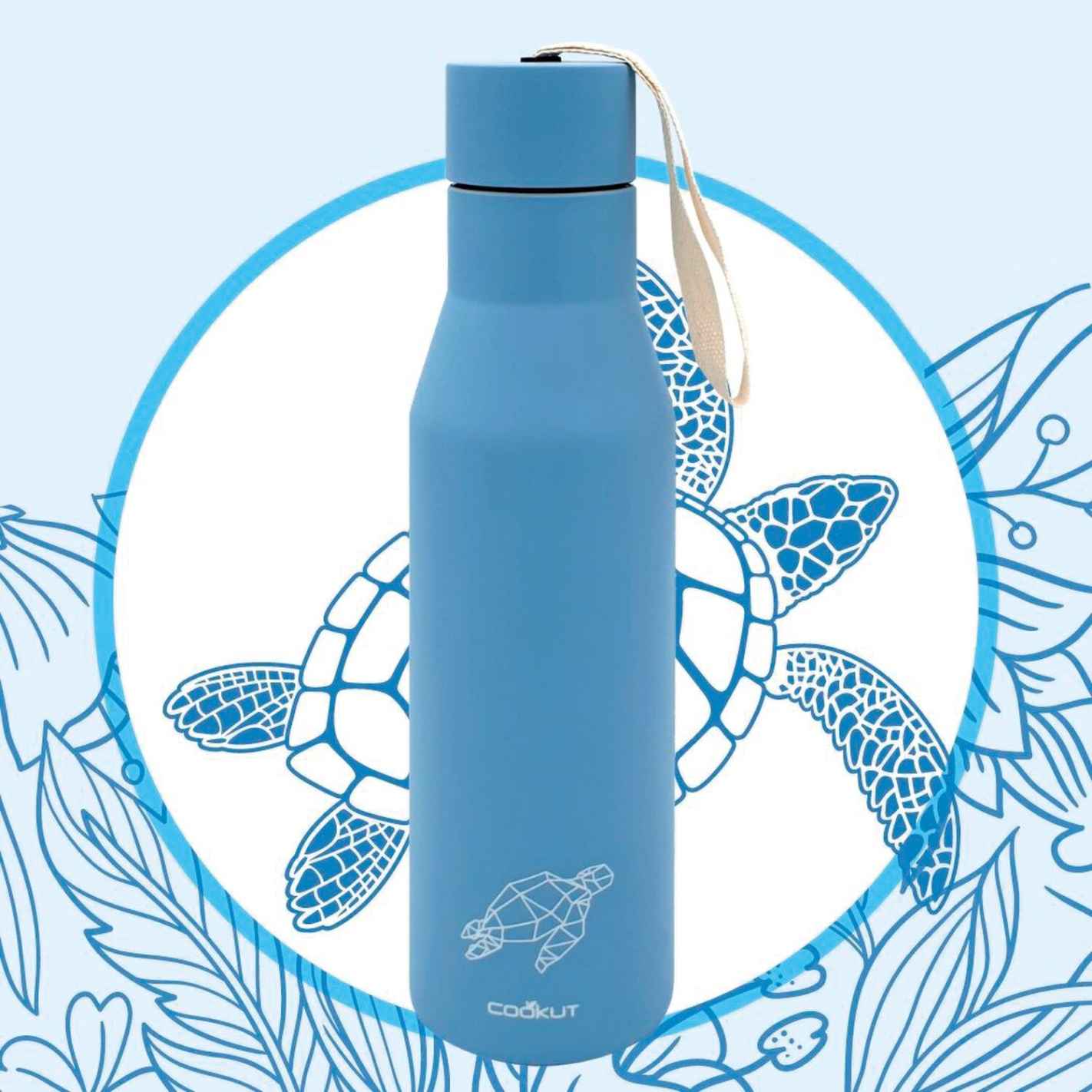 Un petit animal se dessine sur la bouteille isotherme, elle devient alors design ! Mais c'est plus que ça. La marque Cookut est engagée pour l'environnement. En effet, cette bouteille est réutilisable et 20% des bénéfices sont reversés à Pure Ocean qui finance la protection des écosystèmes marins et de la biodiversité.