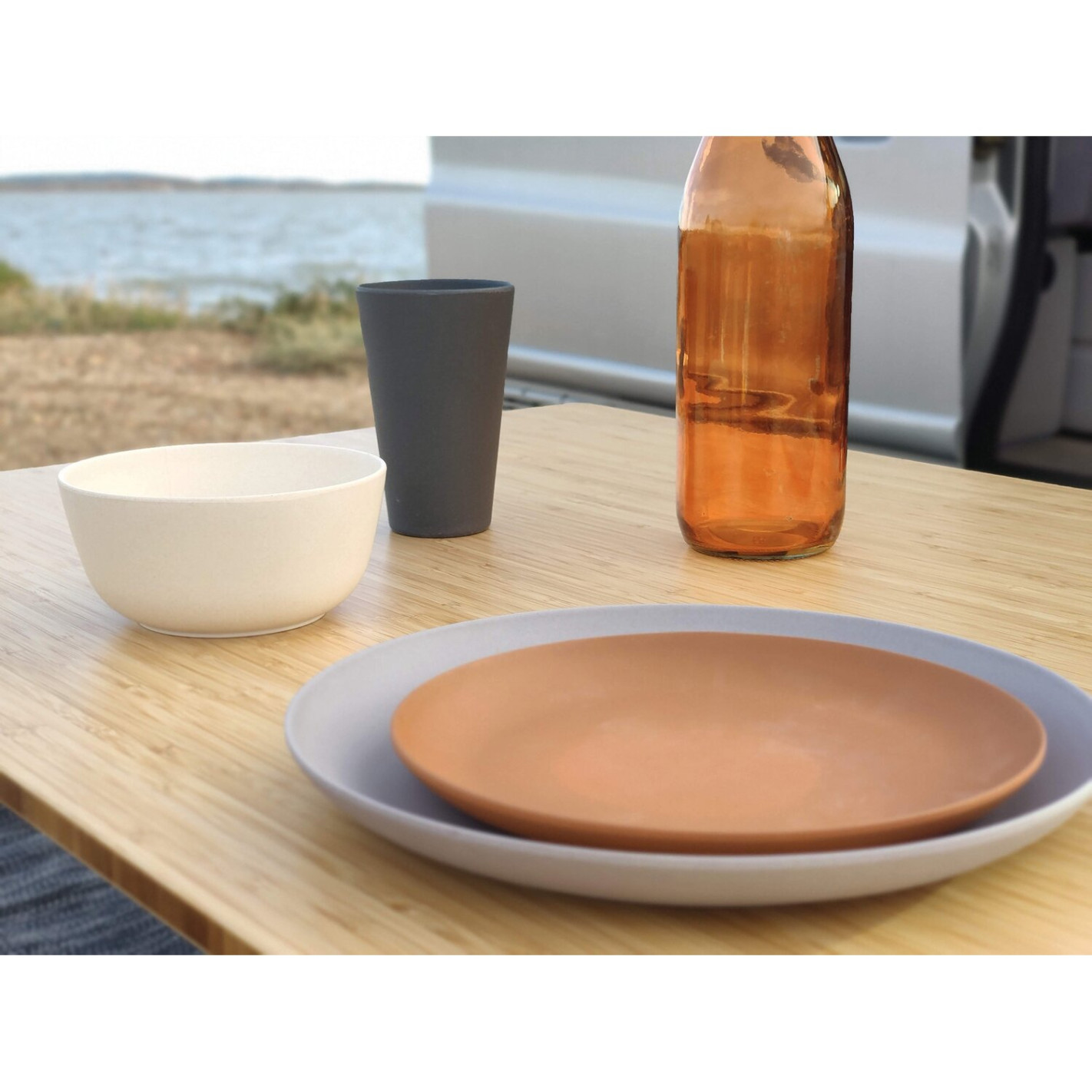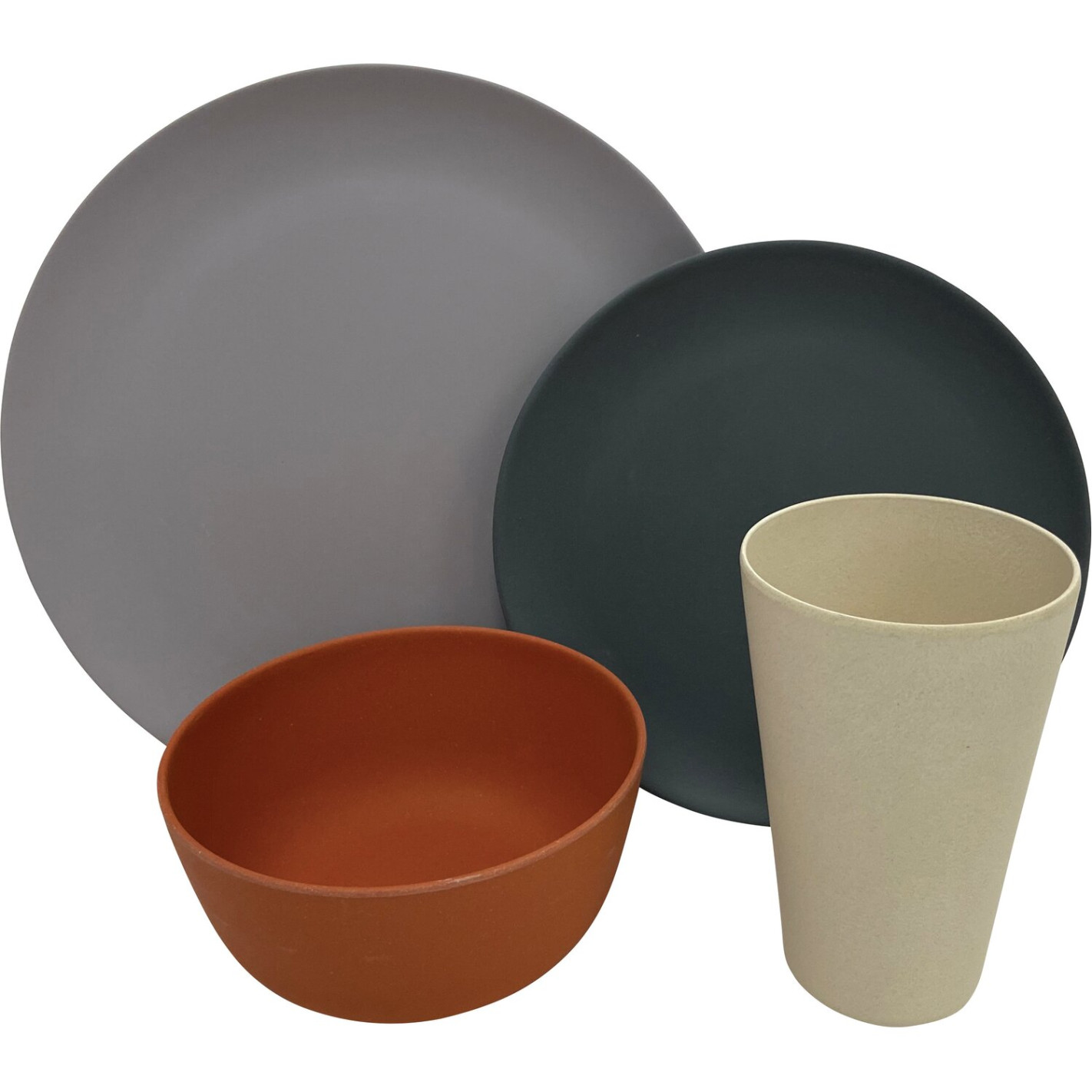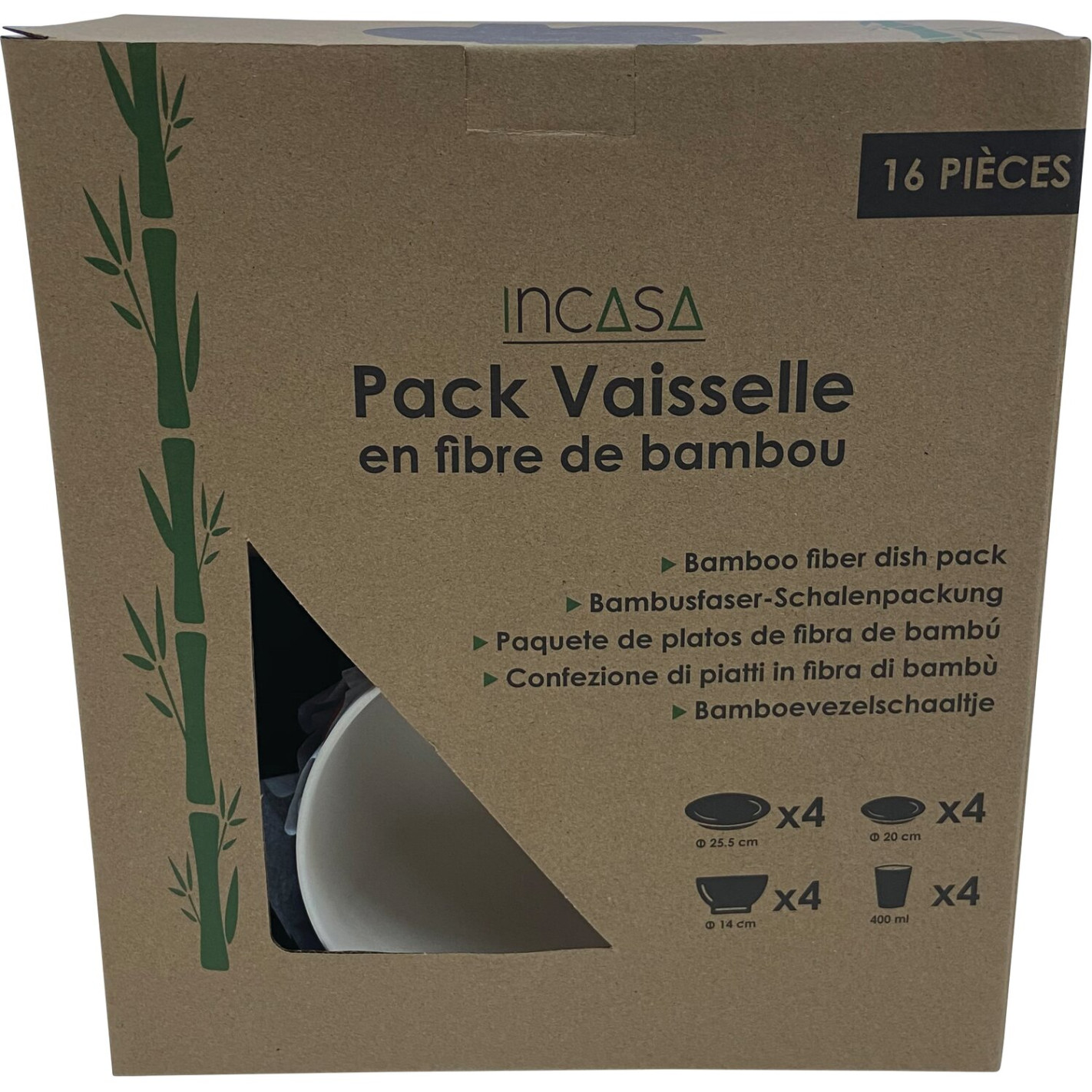 L'ensemble de vaisselle pour 4 personnes de la marque Incasa est composé de 16 pièces en fibre de bambou :