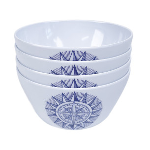 Avec leur rose des vents emblématique, les bols en mélamine Cardinal sentent bon l’évasion. Le bleu clair associé au graphisme marin bleu foncé crée un contraste élégant, parfait pour dresser une table agréable, du petit-déjeuner jusqu’au dîner. Que vous soyez en bord de mer, en montagne ou simplement sur une aire d’étape, ils apportent ce petit côté “vacances” qui fait du bien.