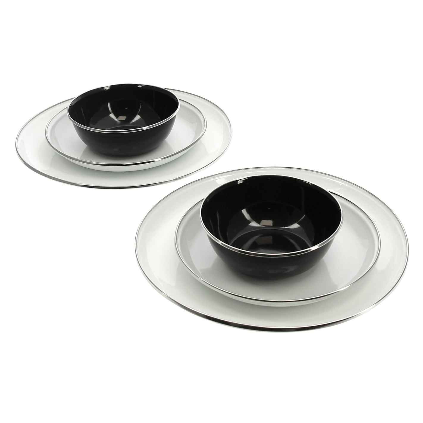 - Contenu : 2 bols (Ø 14,5 x 5,35 cm), 2 assiettes plates (Ø 28 x 3 cm), 2 assiettes creuses (Ø 21 x 3 cm)