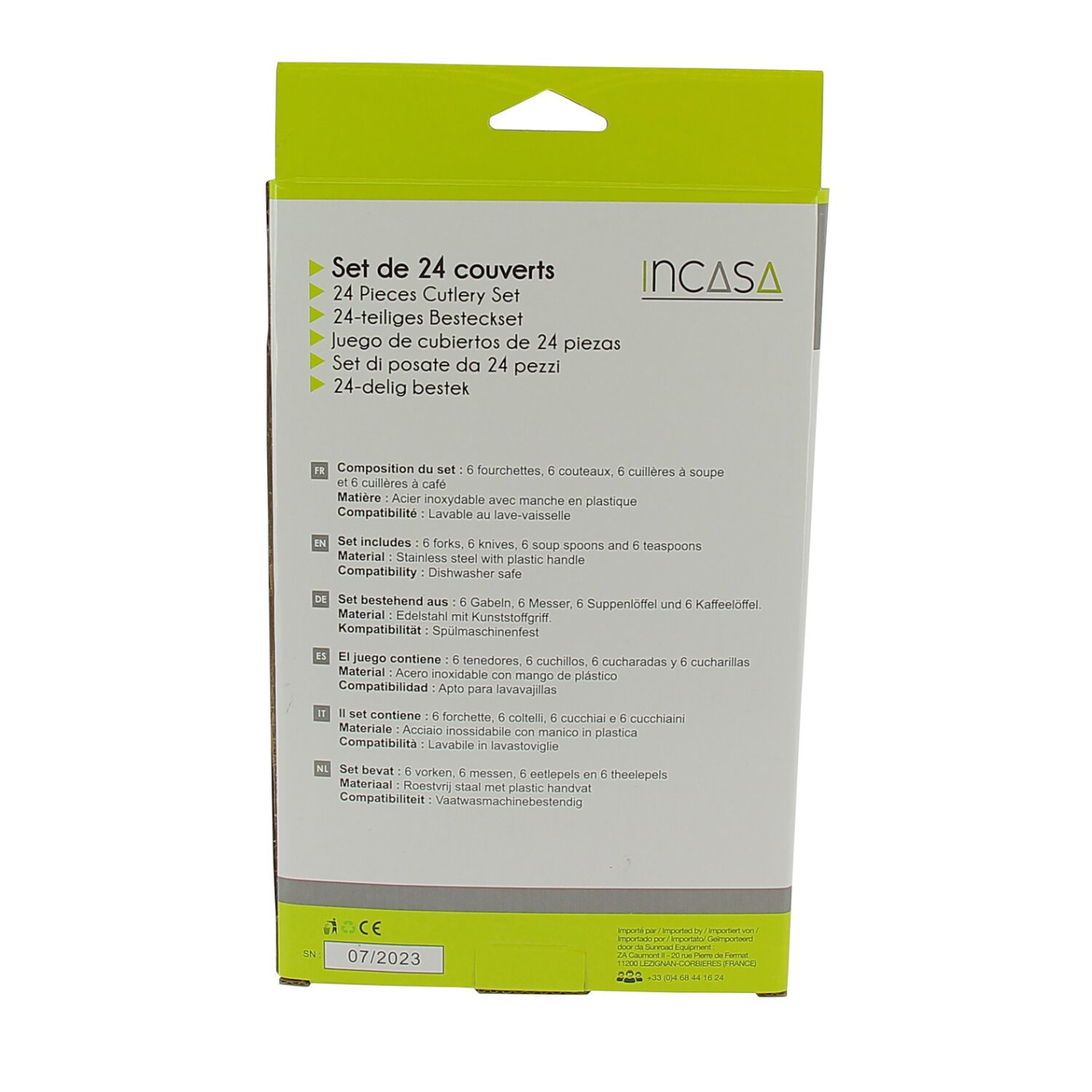 L'ensemble de couverts Incasa est un assortiment de 24 pièces en acier inoxydable conçu pour accueillir 6 convives. Un set de vaisselle bien utile pour les voyages en véhicules de loisirs (camping-car, caravane, van...).