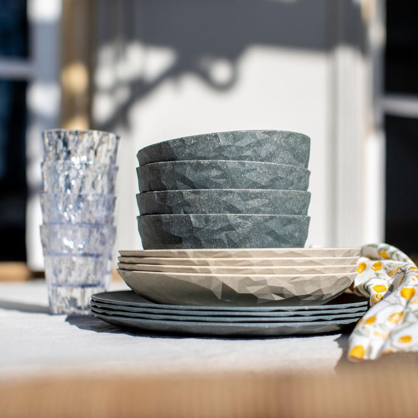 Avec ses couleurs grise et beige, le kit de vaisselle Club Göteborg est design et convient à toute décoration de table. De plus, les assiettes et bols possèdent un extérieur avec un design à facettes. C'est stylé !