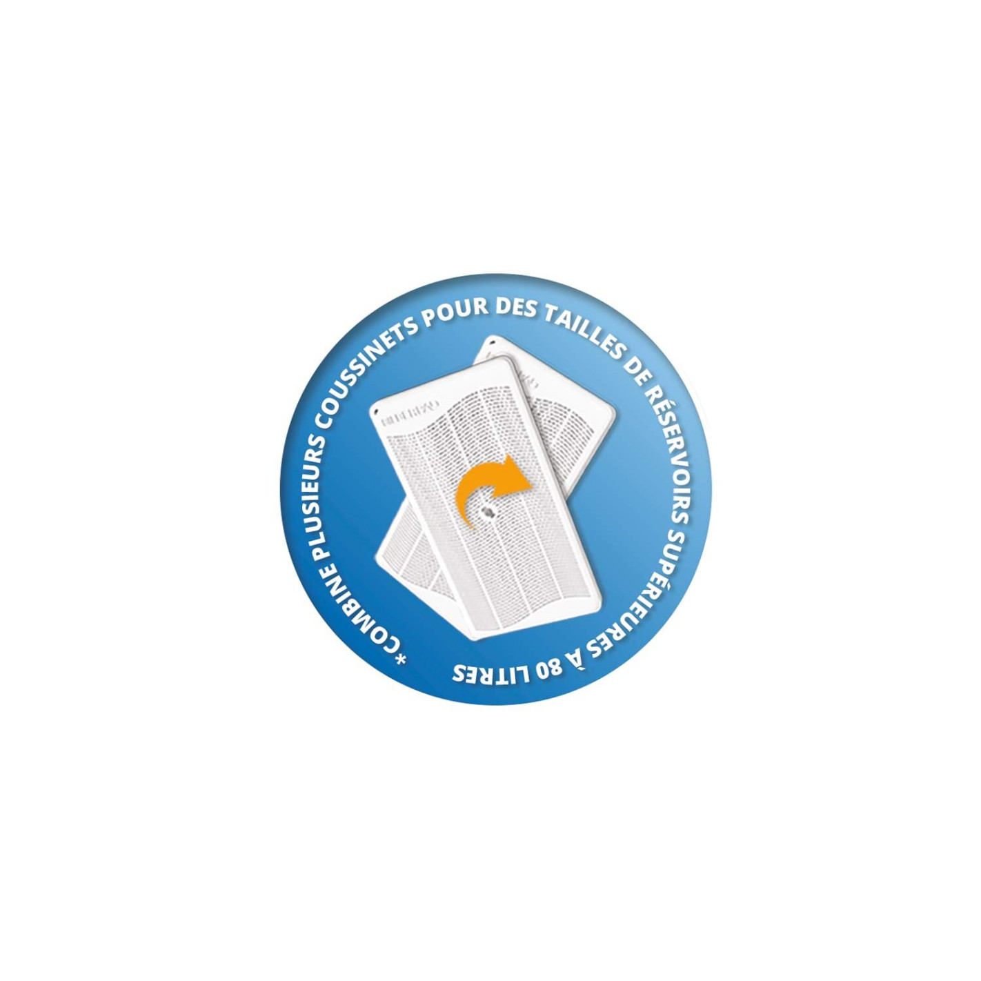 Au niveau compatibilité, le conservateur d’eau convient pour réservoirs jusqu’à 80 litres. Si vous possédez un réservoir d’eau de plus de 80 litres, vous pouvez combiner le Silverpad (coussinet d’argent) avec d’autres SilverPads avec pour règle que pour toute nouvelle tranche de 80 litres, il faut un SilverPad supplémentaire.