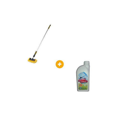 Le pack regroupe un balai de lavage télescopique de la marque Roc Line (Référence RG-120414) et un shampoing cirant pour carrosserie Elsan (Référence RG-311022). Parfait pour faire briller votre véhicule !