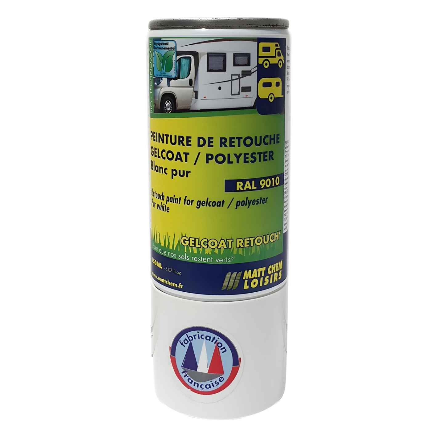 Peinture de retouche pour gelcoat et polyester, teinte Blanc Pur RAL 9010. Application facile, séchage rapide et bonne résistance aux UV, idéale pour corriger de petites imperfections.