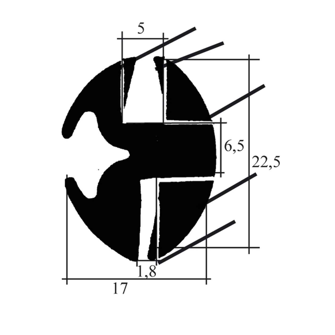 Profil caoutchouc à clé pour glace fixe sur tôle.