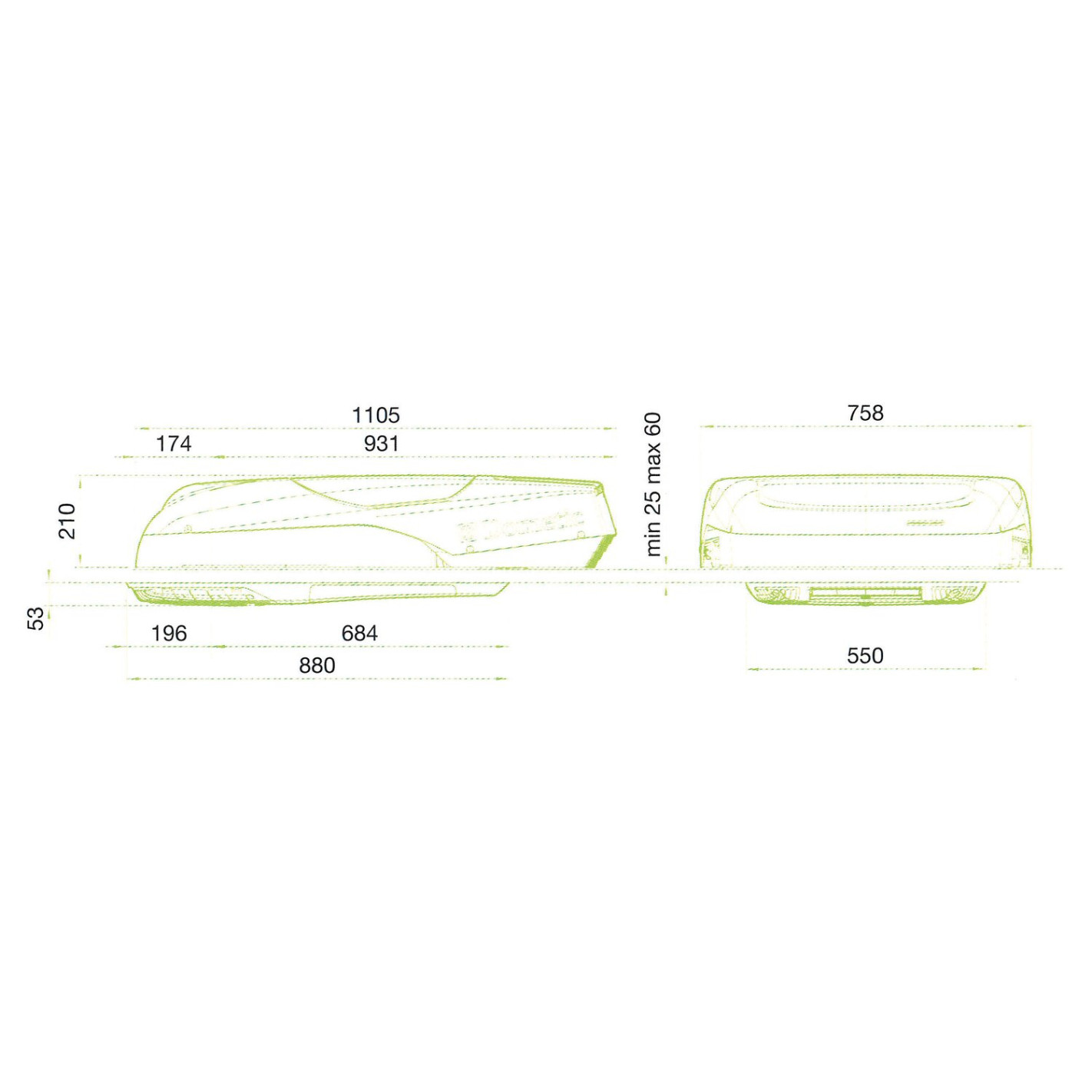 - Epaisseur de toit nécessaire : de 25 à 60 mm