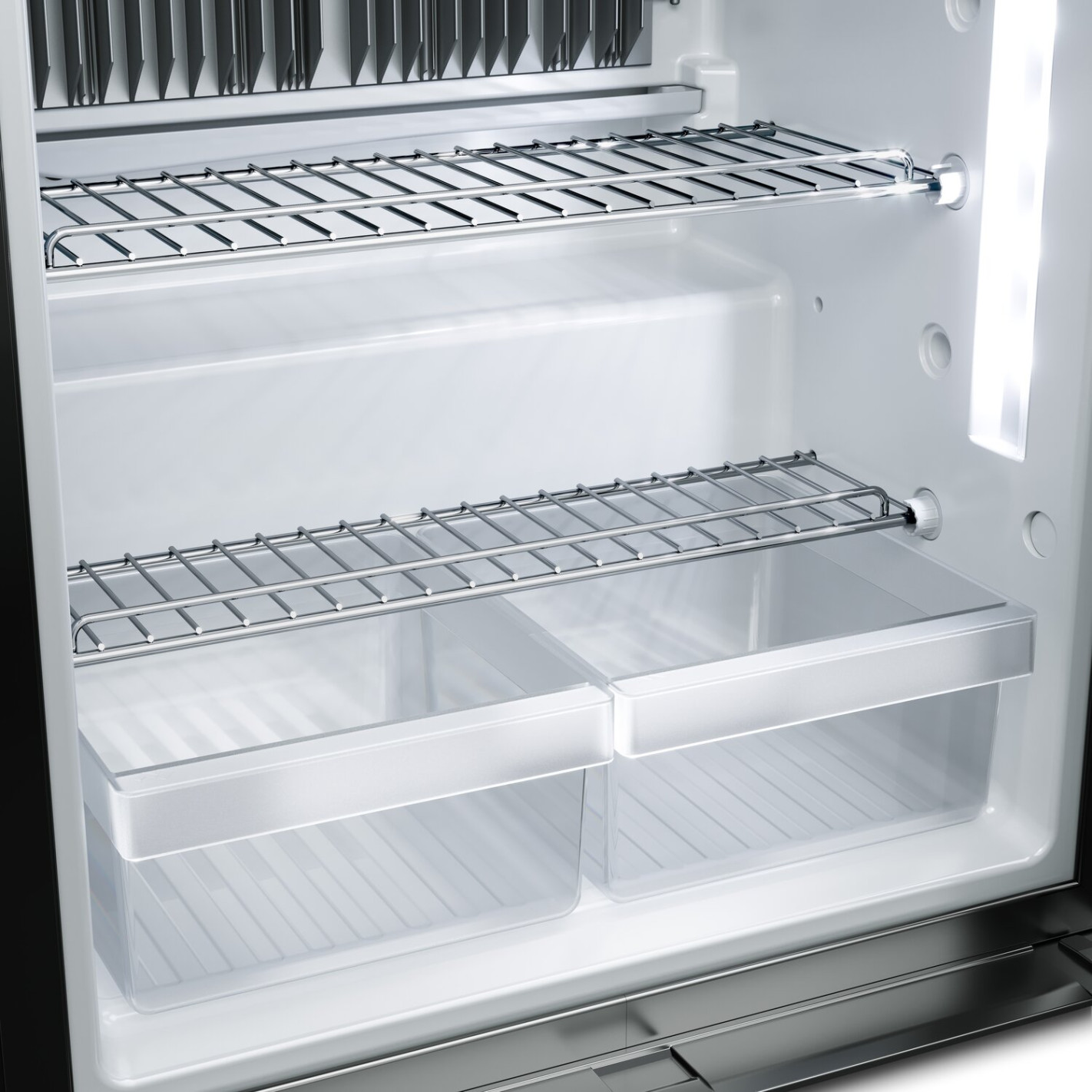 Les frigos trimixtes à absorption de la Série 10 de Dometic possèdent des charnières doubles, ce qui vous permet d’ouvrir la porte dans les deux sens, à droite et à gauche. Les poignées s’étendent sur toute la longueur de ce frigo de camping. Ces dernières, en aluminium, offrent un contraste saisissant avec la porte de couleur noire à finition brillante. Ce frigo a du style et il apportera une touche résolument moderne à votre véhicule de loisirs.