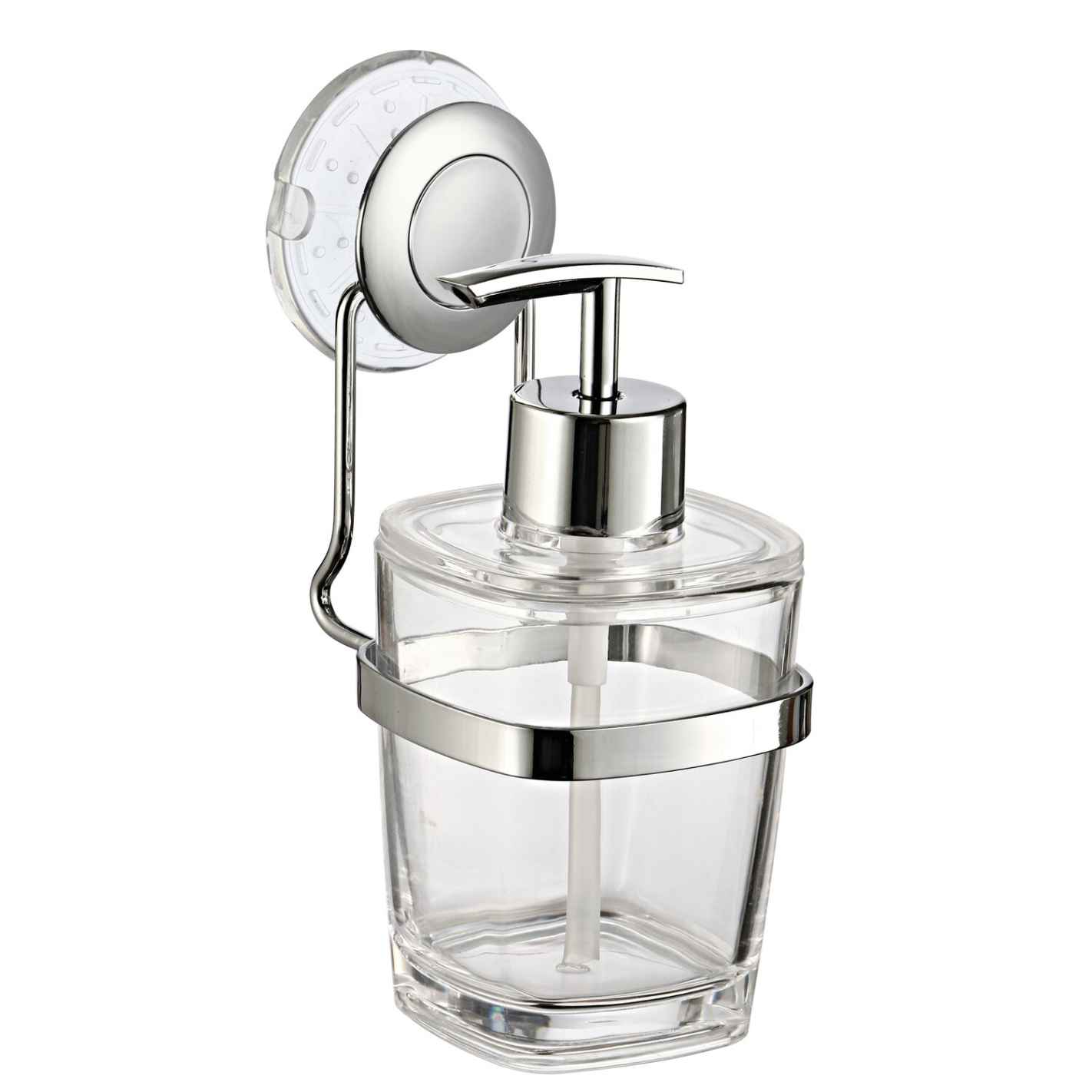 Le support du distributeur de savon se fixe facilement sur une paroi grâce à sa ventouse. Une simple pression suffit à le fixer.