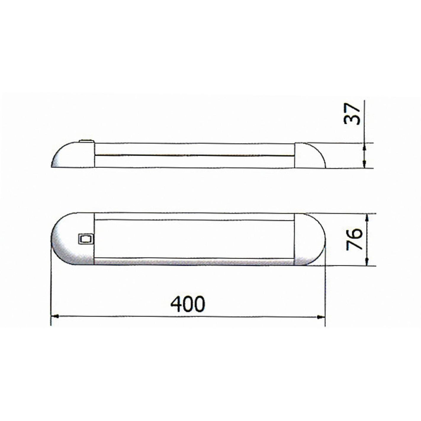 Tension : 12 V. Conso. : 4,3 W. Puissance : 350 lm. Dim. (LxHxP) : 400 x 37 x 76 mm. Avec interrupteur. Tension : 12V. Conso : 4,3W. Puissance : 350 Iumens. Dimension (LxHxP) : 400 x 37 x 76 mm.