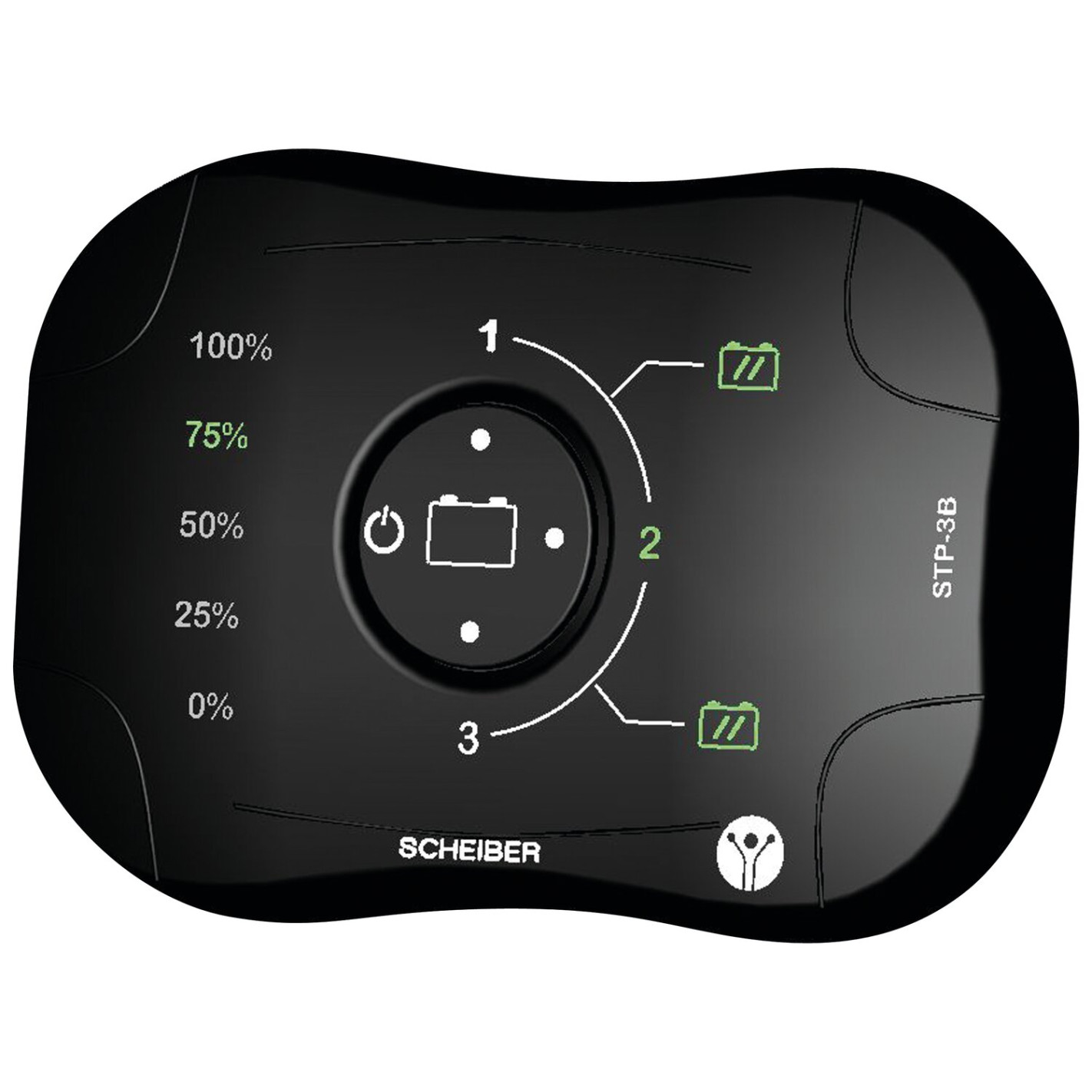 La jauge mesure la tension de la batterie principale et de la batterie auxiliaire. La face avant est entièrement étanche.