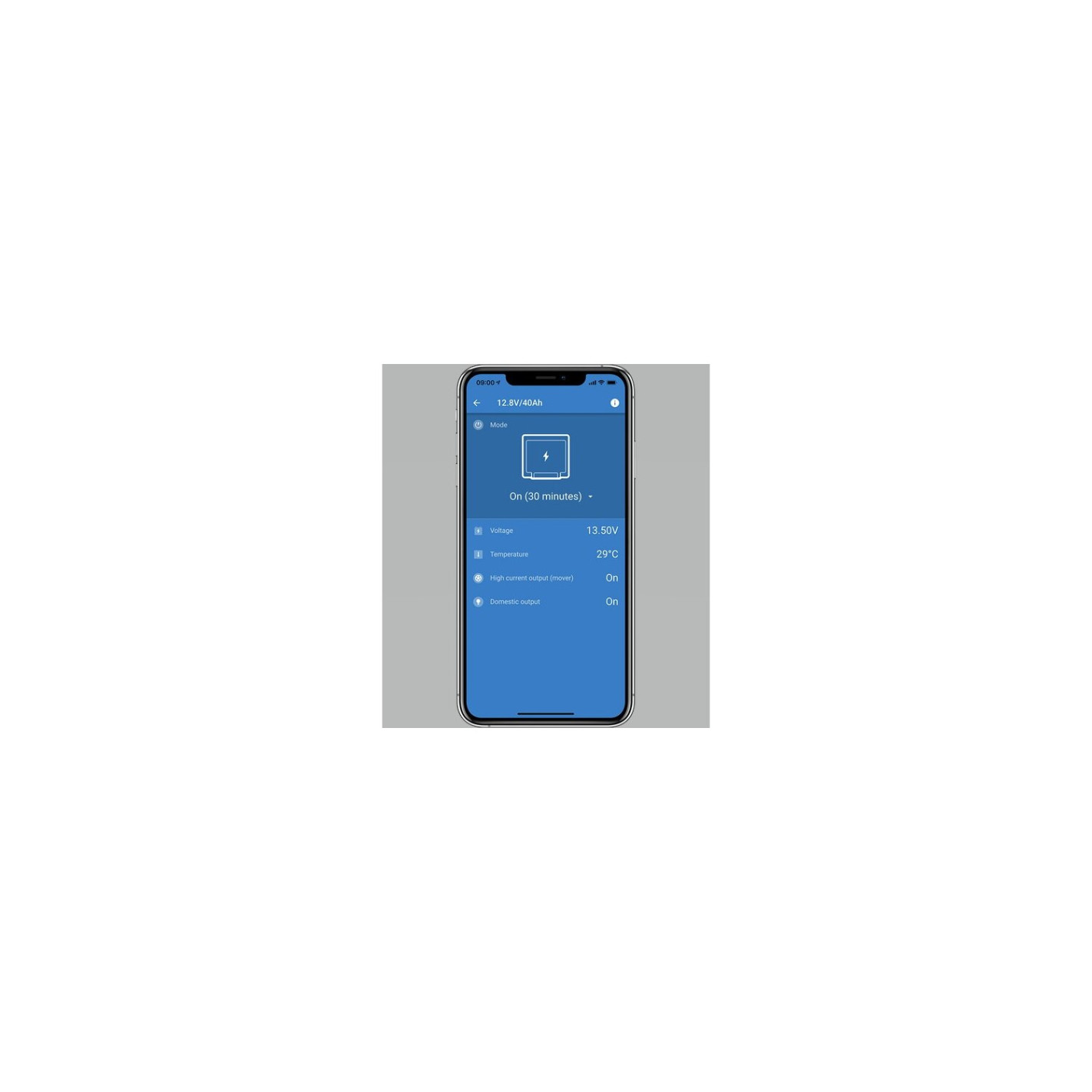 Capacité 20Ah. Courant de charge maxi 20A.