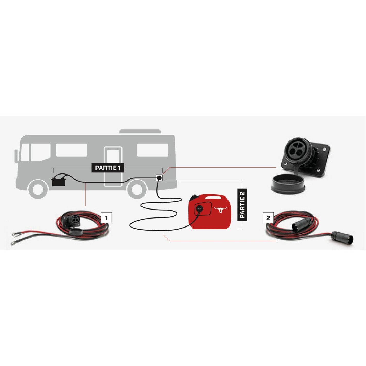 Moteur 4 temps essence avec lanceur manuel. Sécurité huile. Alarme en cas de surcharge. Alarme (voyant lumineux non sonore). Capacité du réservoir : 2,98 l. Autonomie 5h30 à 11 h selon utilisation. Niveau sonore : 53 dBa. Tension nominale : 14,4 V. Courant maximal : 45 A. Dim. (LxHxP): 463 x 381 x 316 mm. Poids: 13,8 kg. Câble de charge (452263) et kit de montage à commander séparément.