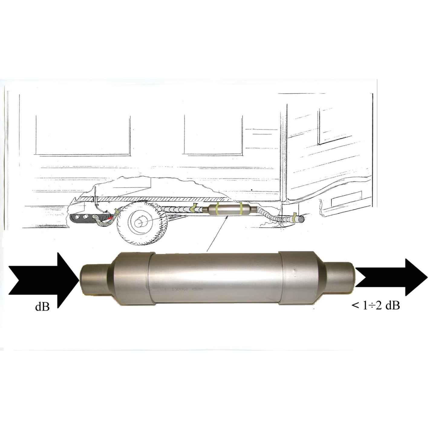 Jusqu'à -25 dB de bruit atténué. Dim. (Diam x L) : 95 x 490 mm.