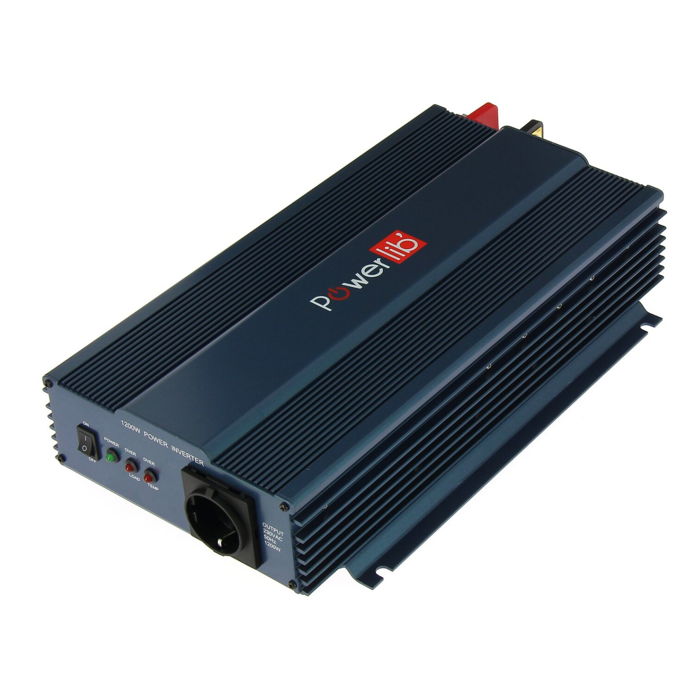 Convertisseur camping-car pur sinus. Les convertisseurs pur sinus Powerlib permettent d'alimenter tout type d'appareil y compris les plus sensibles (ordinateur portable, télévision, appareil photo, téléphone...) grâce à son énergie restituée en 230 volts à ondes parfaites similaire au courant domestique sinusoïdal. Facile à installer sur tout véhicule possédant une batterie 12 v : camping-car, fourgon... Protection contre les inversions de polarité, les surchauffes et les courts-circuits. Interrupteur intégré et prise pour télécommande déportée. 1200W. Alimentation: batterie. Puissance nominale 1200W. Puissance Max. 1800W. Dimensions (lxhxp) : 403 x 82 x 232 mm. Poids : 4Kg.