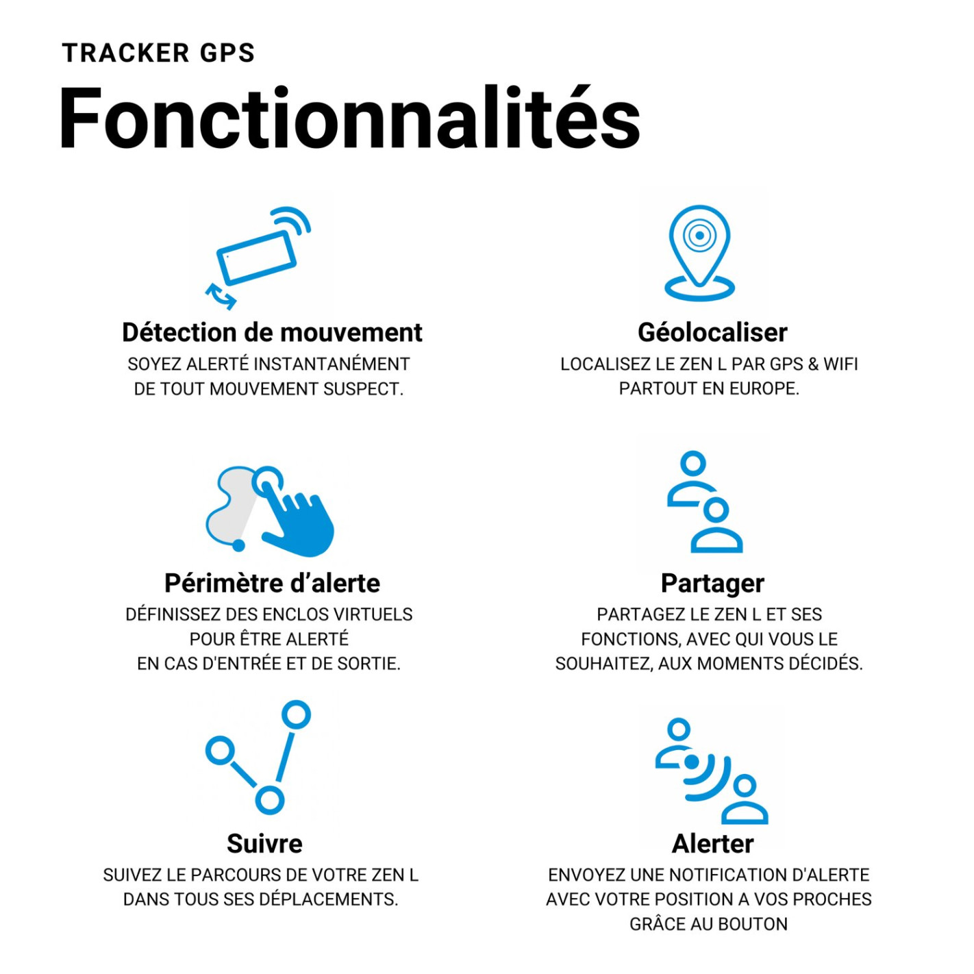 Est livré avec le tracker Beepings Zen L son support de fixation, le câble de recharge USB-C et sa carte d'identification individuelle.
