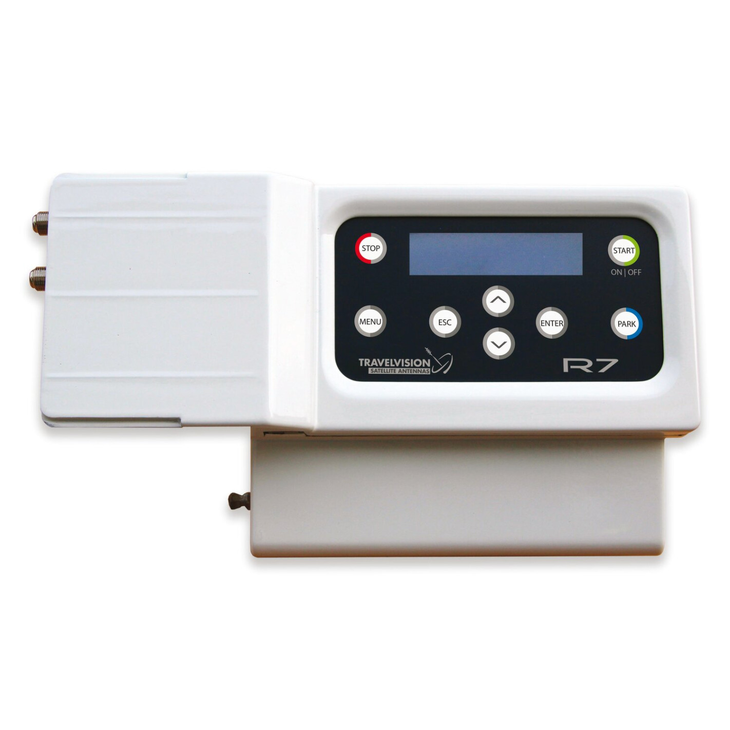 Antennes satellites portative et automatique R7. Ce système d’antennes satellites entièrement automatique et mobile vous permettra de profiter de vos programmes préférés dans toutes vos escapades en véhicules de loisirs et tout particulièrement en Van ou en fourgon aménagé. Facile à transporter et facile à installer l’antenne satellite portative et automatique R7 se connecte avec un seul câble, elle se configure d’une seule pression de bouton pour trouver le satellite de votre choix. Il n’y a pas plus simple. Antennes satellites portative et automatique R7 a été conçu avec des matériaux plastiques de haute qualité spécial extérieur, le Travel Vision R7 résiste donc à toutes les conditions météorologiques. Le système Travel Vision R7 a également été a été pensé pour être sécurisé contre le vol : une fois que l’antenne parabolique est connectée au satellite, vous pouvez facilement retirer le module de commande du système (qui contient les moteurs, l’électronique et les batteries du système), le ranger en sécurité et regarder la télévision. De plus, l’antenne parabolique ne peut pas être utilisée sans le module de commande. L'adaptateur d'alimentation 230-24 Volts n'est pas fourni avec l'antenne.
