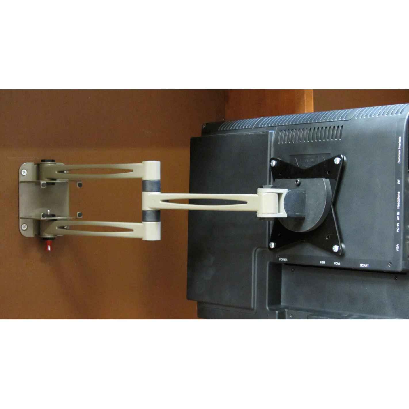 Modèle : 2 articulations. Déport : 26 cm. Avec supports pour câbles.Charge max. : 8 kg. VESA 75/100. Avec clé Allen (3mm et 5 mm)et kit de fixation.