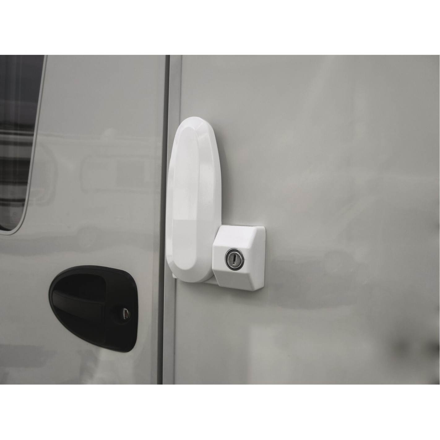 La serrure de porte sert à renforcer la sécurité de votre véhicule de loisir, à savoir un camping-car ou une caravane. Elle sécurise notamment la porte latérale du véhicule, qu'elle ouvre vers la gauche ou vers la droite. Il s'agit d'un dispositif anti-vol pour votre camping-car. Grâce à cette serrure supplémentaire, vous protéger vos biens personnels et votre véhicule de toute intrusion.