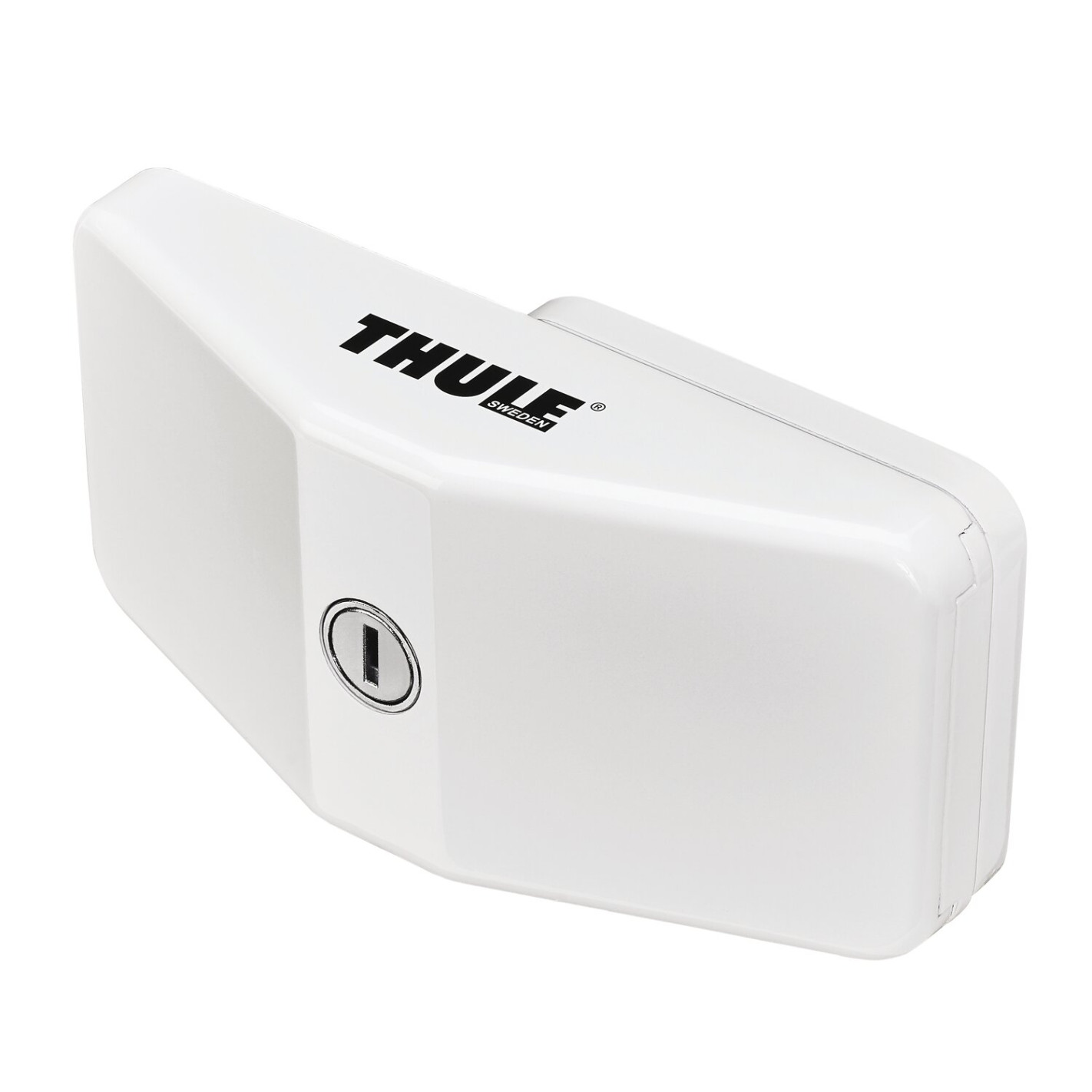 La serrure est en aluminium anodisé robuste avec un laquage blanc. Elle se ferme et s'ouvre par un mouvement latéral, ce qui est plus résistant qu'une fermeture par rotation. Le dispositif anti-vol se verrouille à l'aide d'une clé.