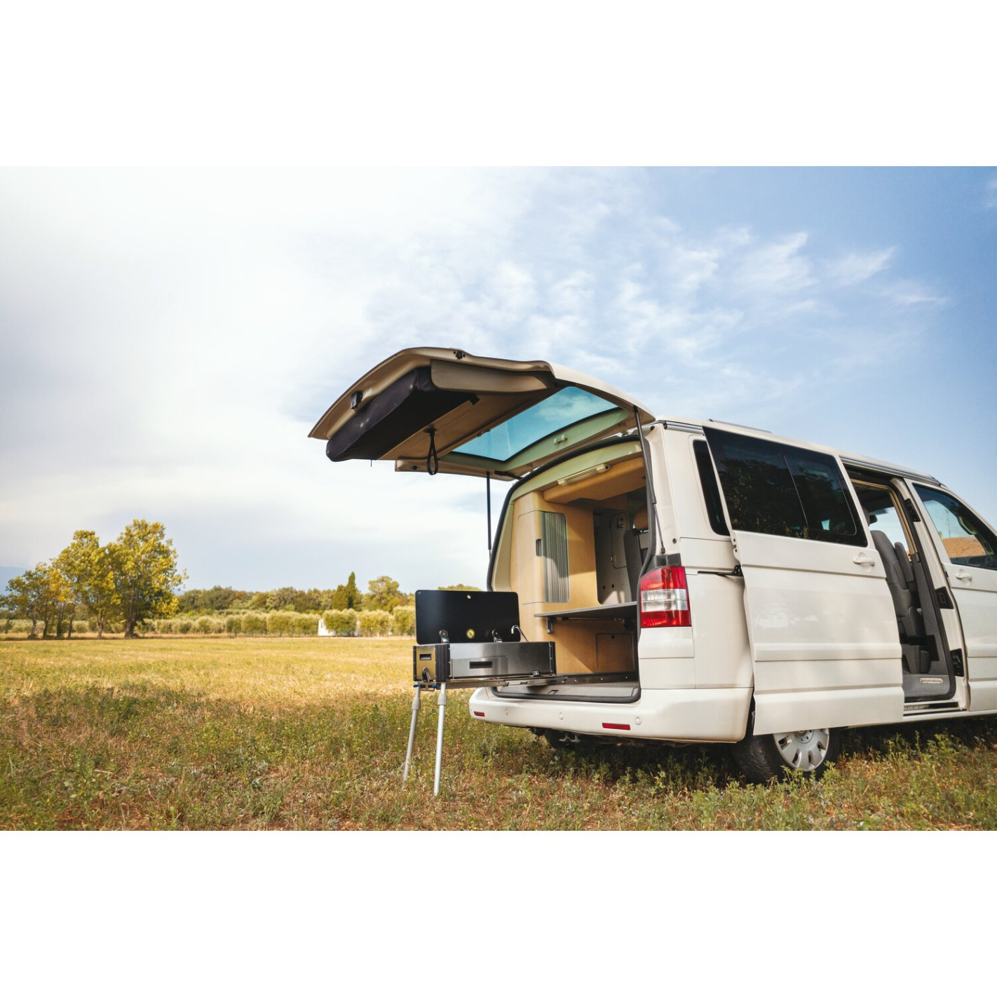 Alimentation gaz : butane/propane/GPL 30 mBar. Livré avec le système de coulisses, le tuyau de gaz, les 4 pieds télescopiques, le robinet en laiton chromé et la bonde avec son bouchon. Existe en deux versions. Dimensions (L x l x H) : 590 x 483 x 250 mm. Poids : 16 kg.