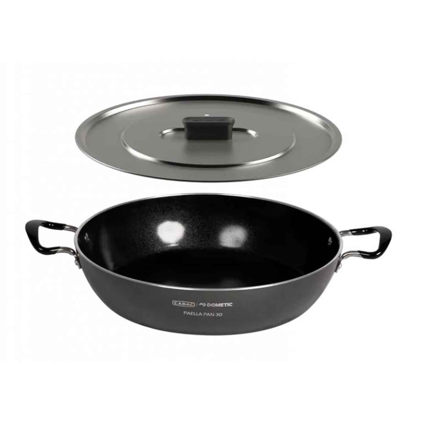 Fabriqué en aluminium antiadhésif, ce plat est léger, facile à utiliser et à nettoyer. Le plat à paëlla 30 garantit une cuisson uniforme et une facilité d'entretien. D'ailleurs, les poignées en acier inoxydable rendent la manipulation du plat sûre et facile, même lorsqu'il est chaud. Les finitions du dessous du plat sont en acier clair usiné, garantissant une répartition uniforme de la chaleur. De plus, grâce au couvercle, vous pouvez faire cuire plus rapidement vos aliments ou imiter une cuisson four.