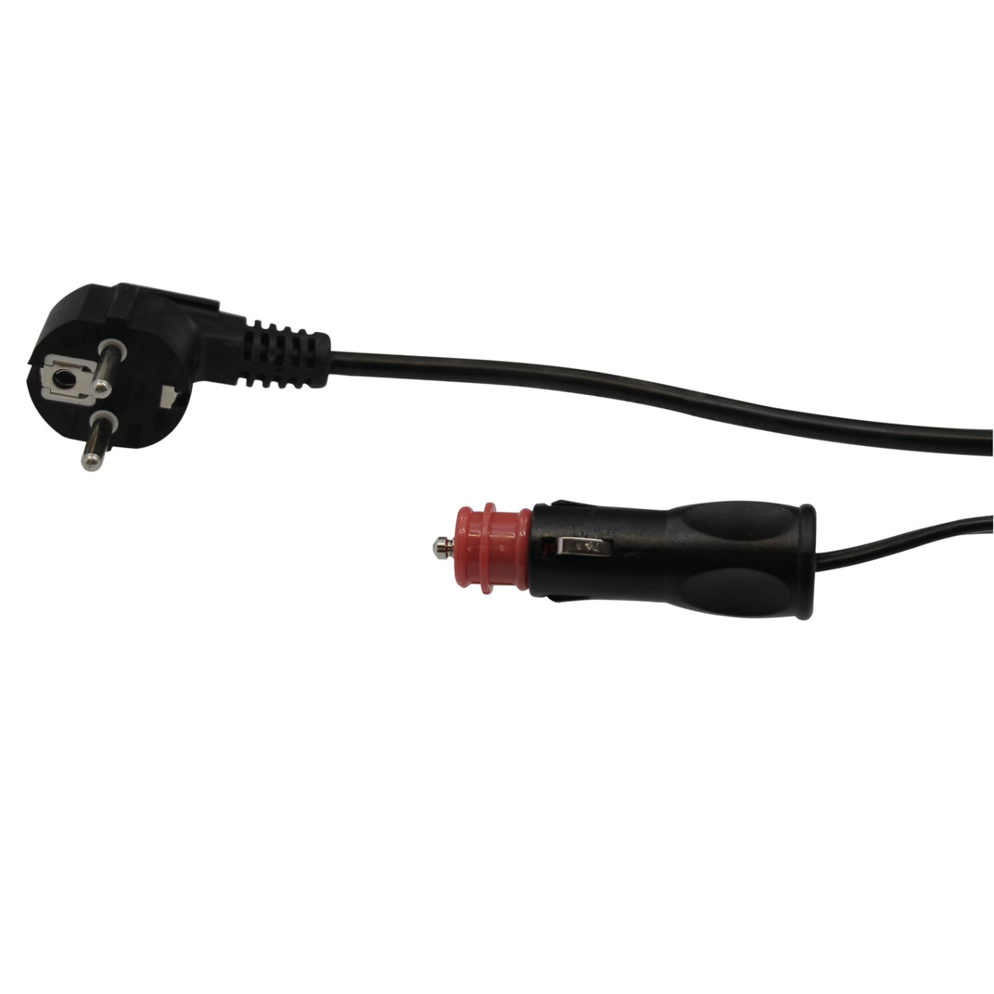- Livré avec : câble allume-cigare 12V de 2.5m, câble d'alimentation 220V / 240V, notice multilingues (FR, EN, ES, IT, DE, NL)