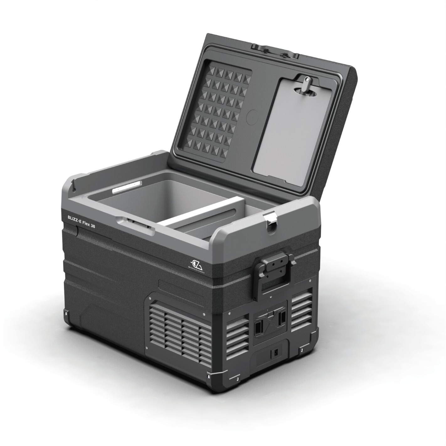 La glacière Blizz-E Flex est une glacière modulable avec deux zones de température ajustables grâce à un séparateur amovible. Disponible en plusieurs tailles, elle est facile à transporter (roulettes et poignée pour les grands modèles 73L et 91L) et pratique avec des fonctionnalités comme une planche à découper intégrée et un contrôle via Bluetooth. Conçue pour l’autonomie, elle peut fonctionner avec une batterie amovible.