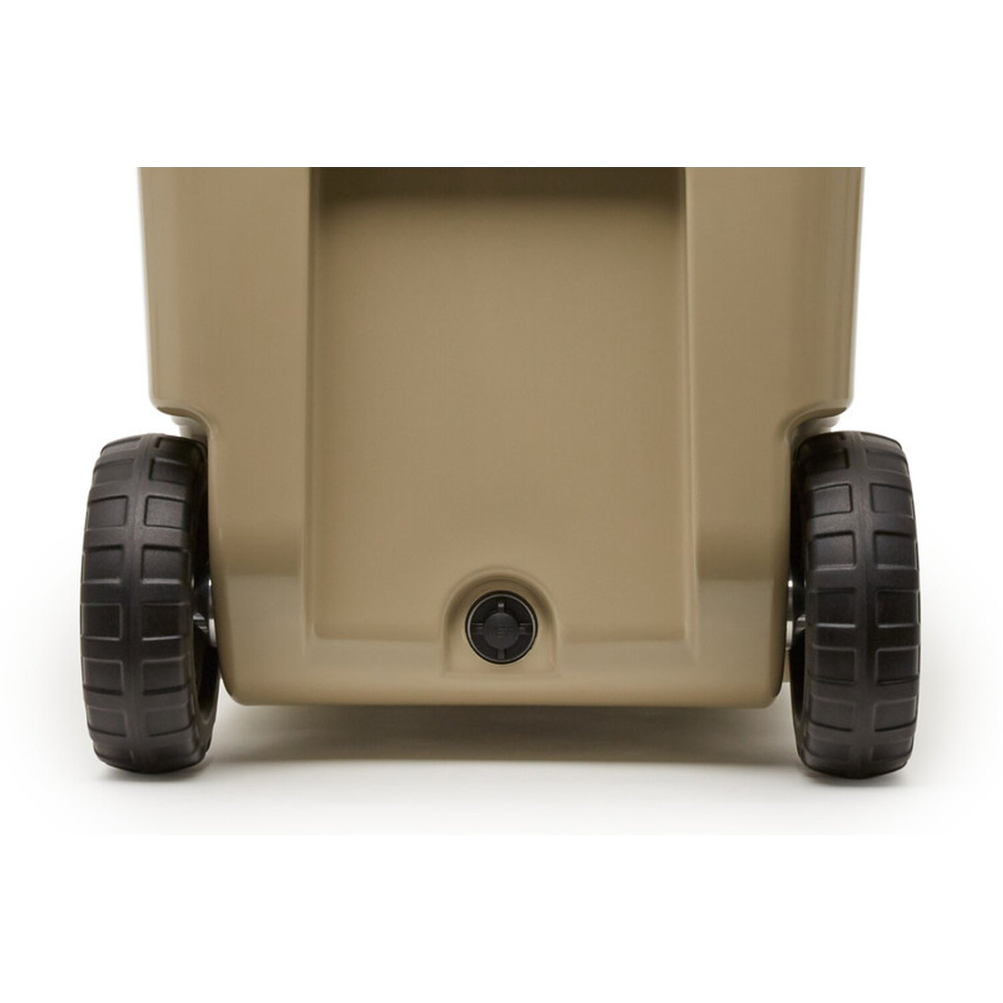 La glacière Tundra Haul a une capacité de 50L, ce qui correspond à environ 45 canettes ou. Elle peut donc contenir assez de provisions pour quelques jours ou pour une grande soirée. Ses dimensions externes sont de 45 x 71 x 46 cm, et son poids est de 14.5 kg. Elle est donc facile à ranger dans votre véhicule de loisir, et à déplacer avec ses roues et sa poignée.