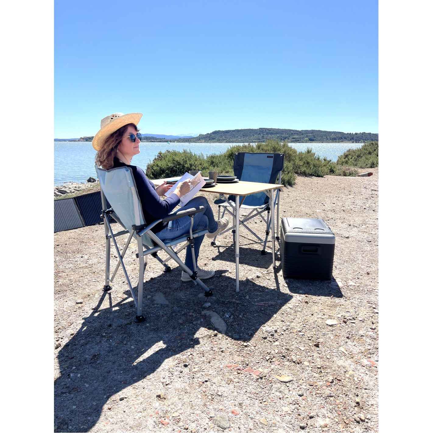 La chaise Cottage en polyester 600D allie esthétisme, robustesse et compacité. Avec ses accoudoirs conçus pour passer sous la table, elle offre une assise confortable et conviviale, idéale pour les repas en extérieur comme en intérieur.