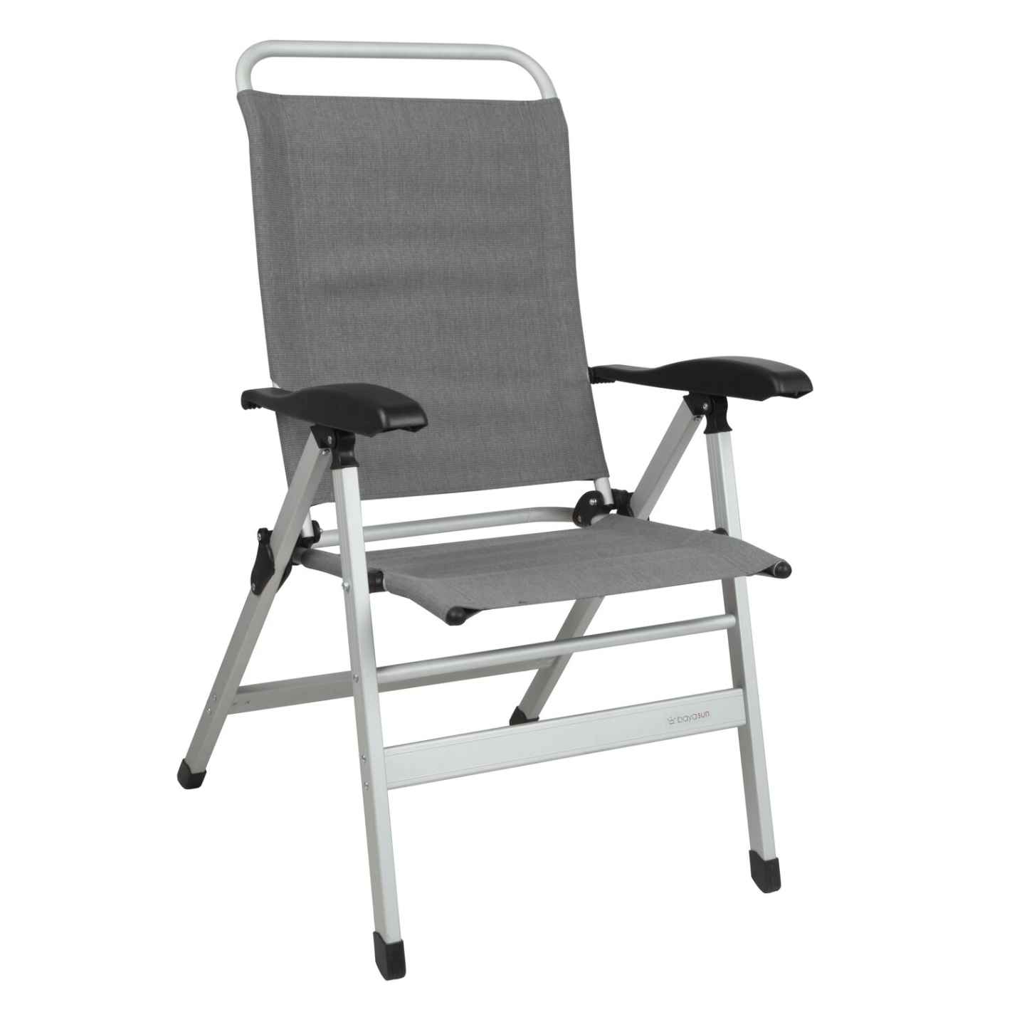 Fauteuil Confort Plus Gris de Bayasun : confort ajustable avec 7 positions d’inclinaison et structure robuste en aluminium. Toile tressée résistante aux intempéries, idéal pour le jardin, la terrasse ou le camping.