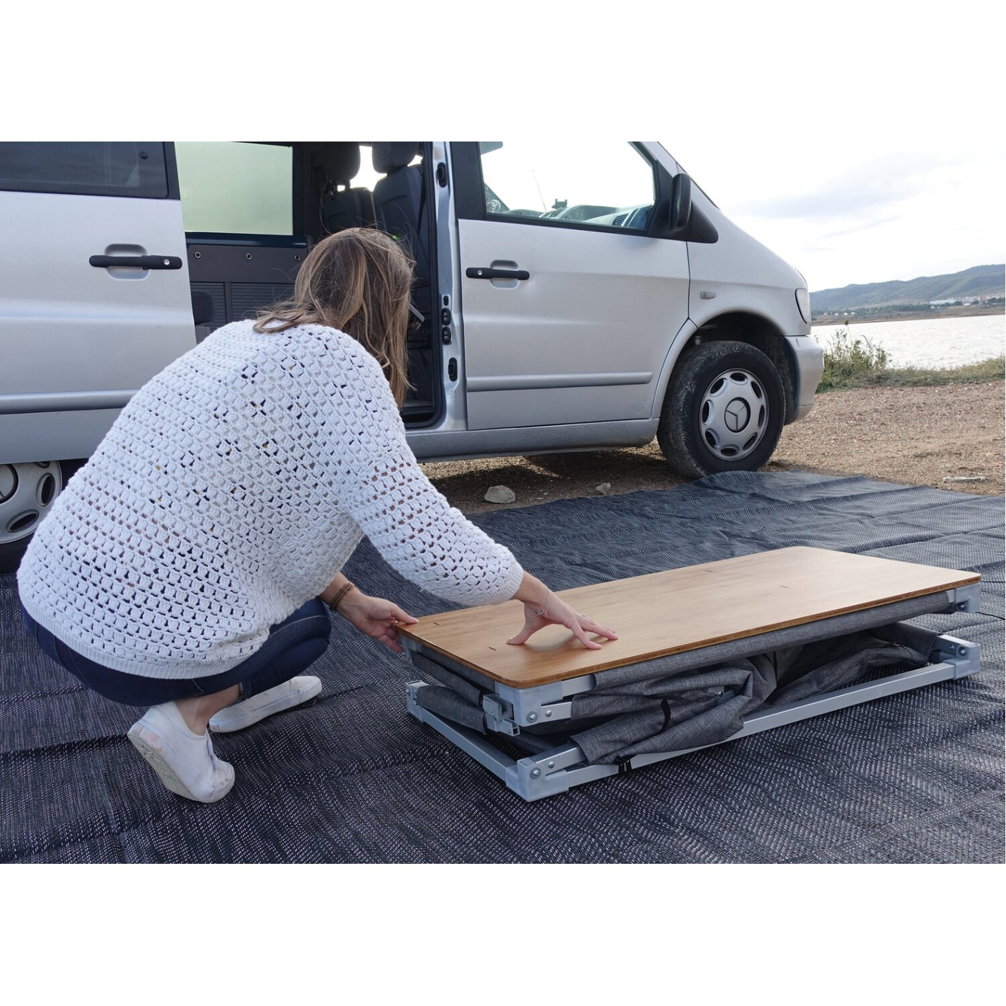 Pour cuisiner, vous pouvez poser un réchaud de camping sur le plan de travail si vous souhaitez manger chaud.