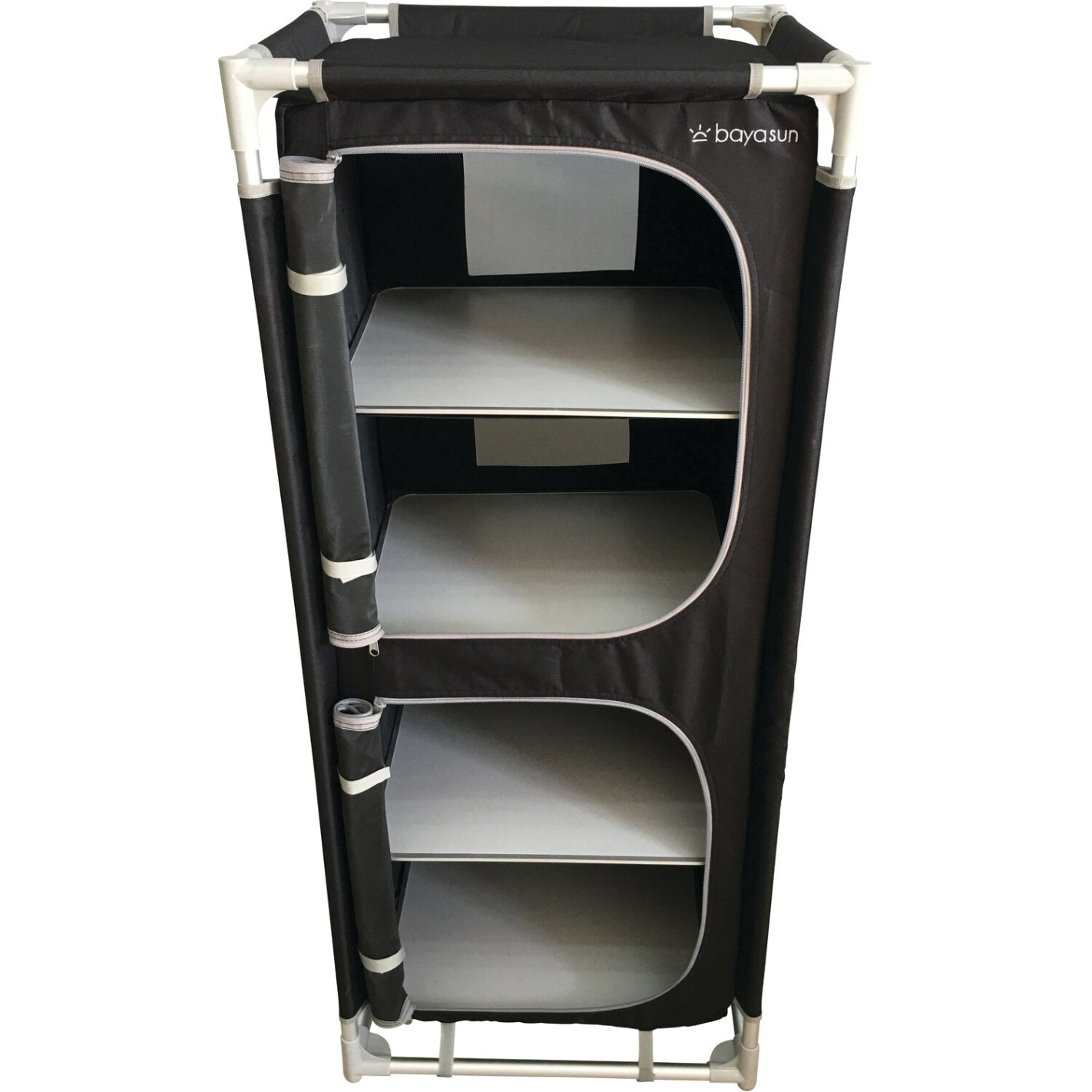 Le meuble de camping de la marque Baya Sun vous offre la possibilité de ranger vos affaires (vêtements, vaisselle ou autres) sur 4 étagères. Lorsque vous réalisez une pause pendant vos excursions en véhicule de loisirs (camping-car, caravane, van, fourgon aménagé, bateau…) ou que vous vous installez en camping tranquillement, le meuble de rangement est très pratique !