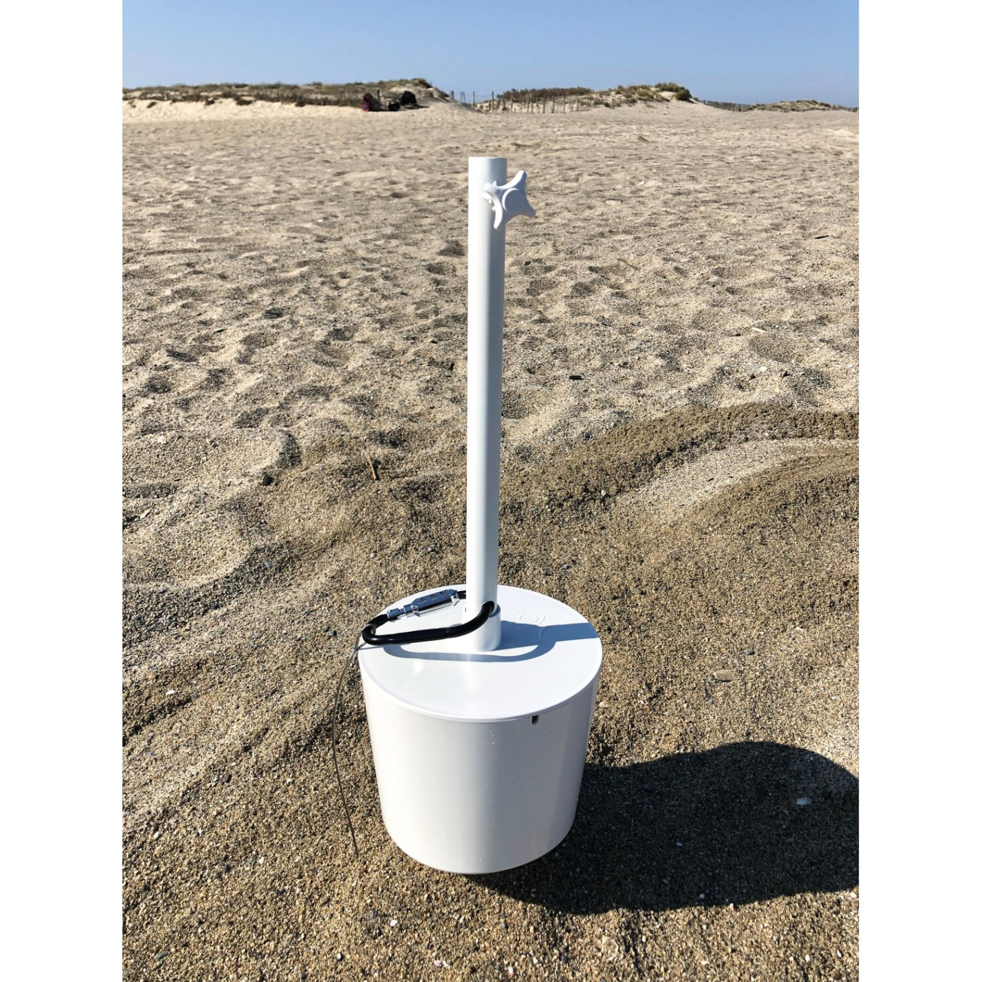 Le pied de parasol pour plage est doté d'une forme de "pelle" tout en bas afin de pouvoir creuser dans le sable sans se fatiguer. Cette pelle intégrée permet aussi d'immobiliser correctement le pied de parasol. Très résistant, il ne s'envole pas malgré des rafales de vent pouvant aller jusqu'à 100 km/h ! En une minute chrono, vous pouvez profiter de votre pied de parasol sur la plage ! Son installation est facile. Il convient pour tous les parasols de plage.